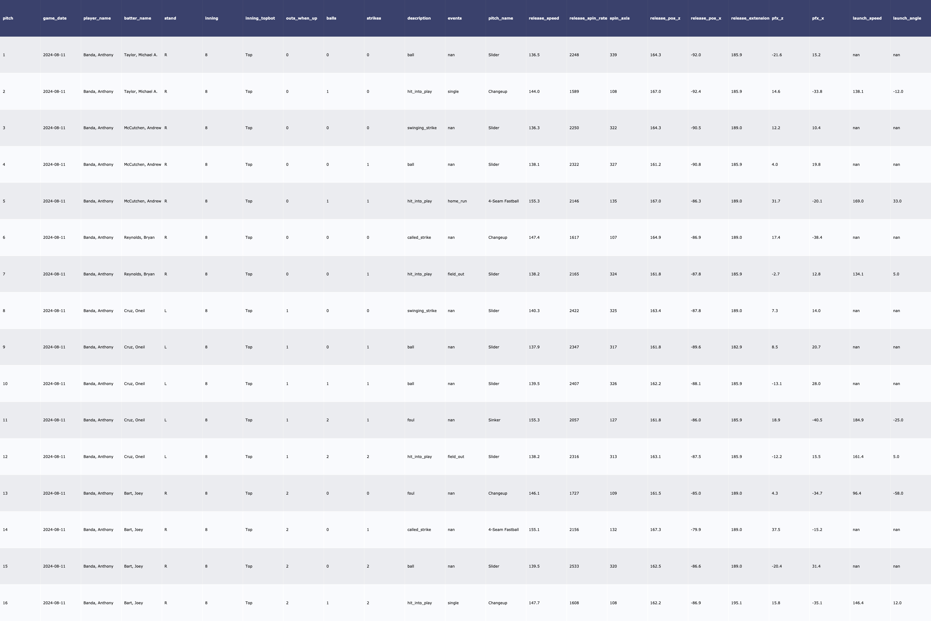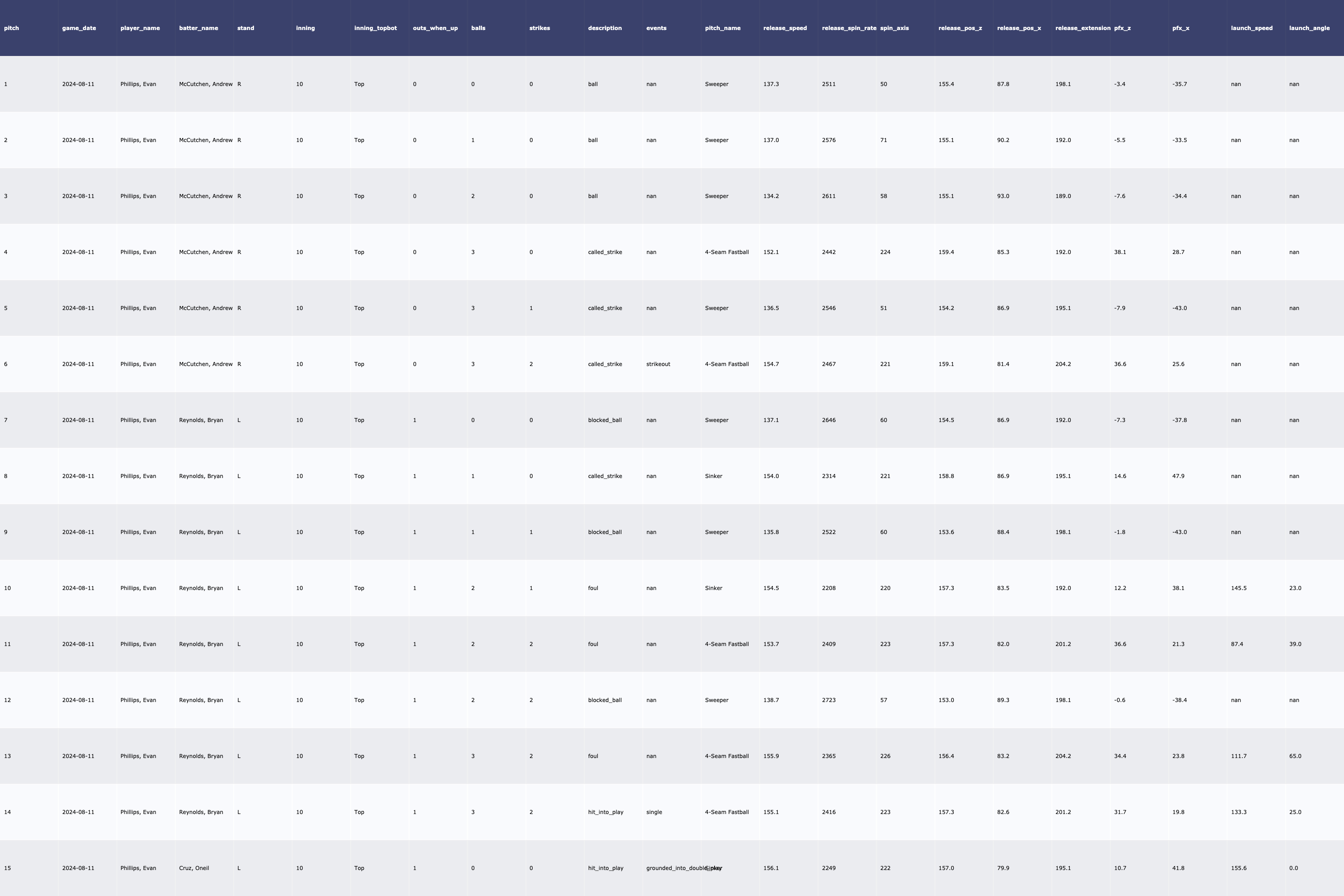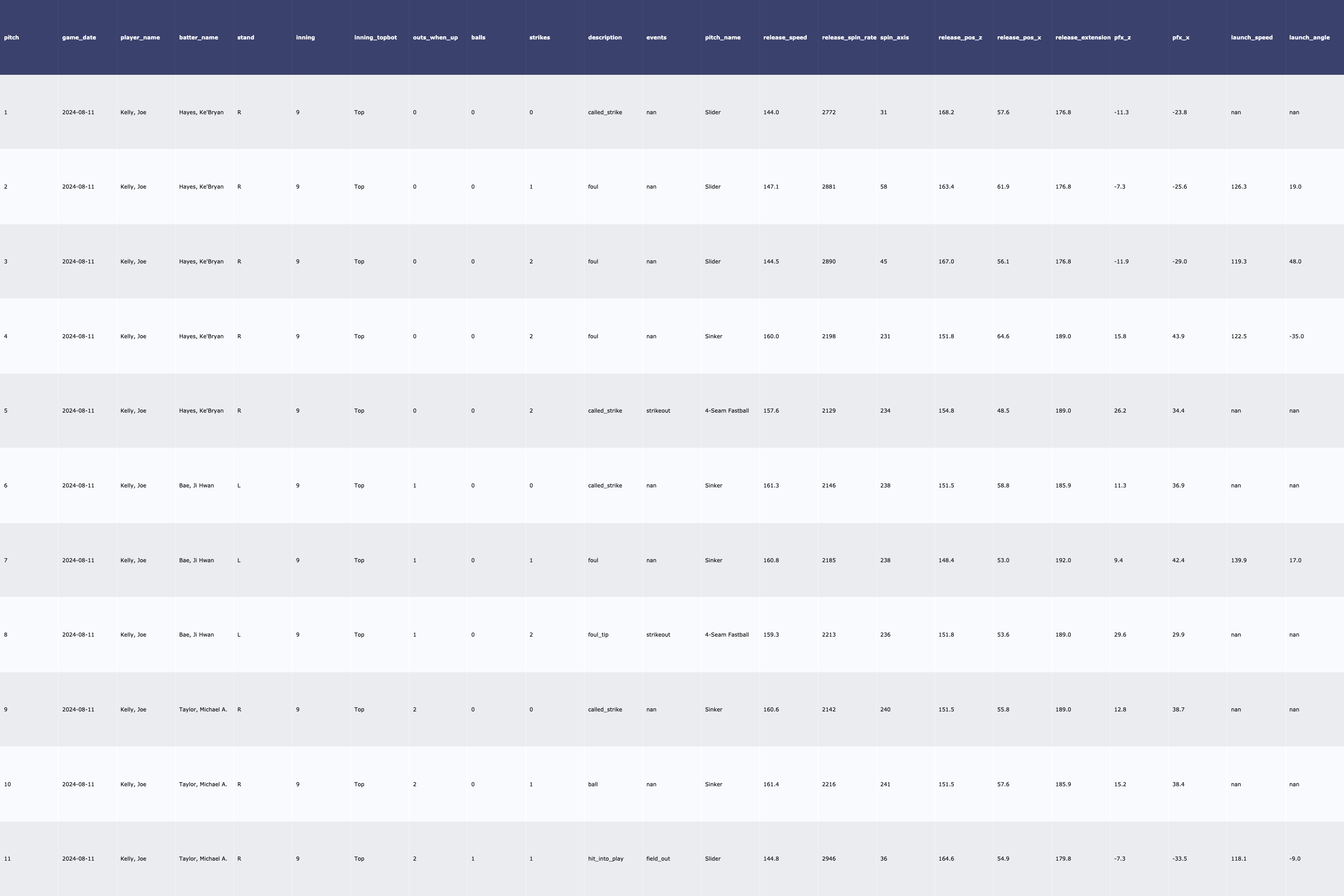 | 8/11 vs PIT 투수 데이터 (0) | 2024.08.13 |