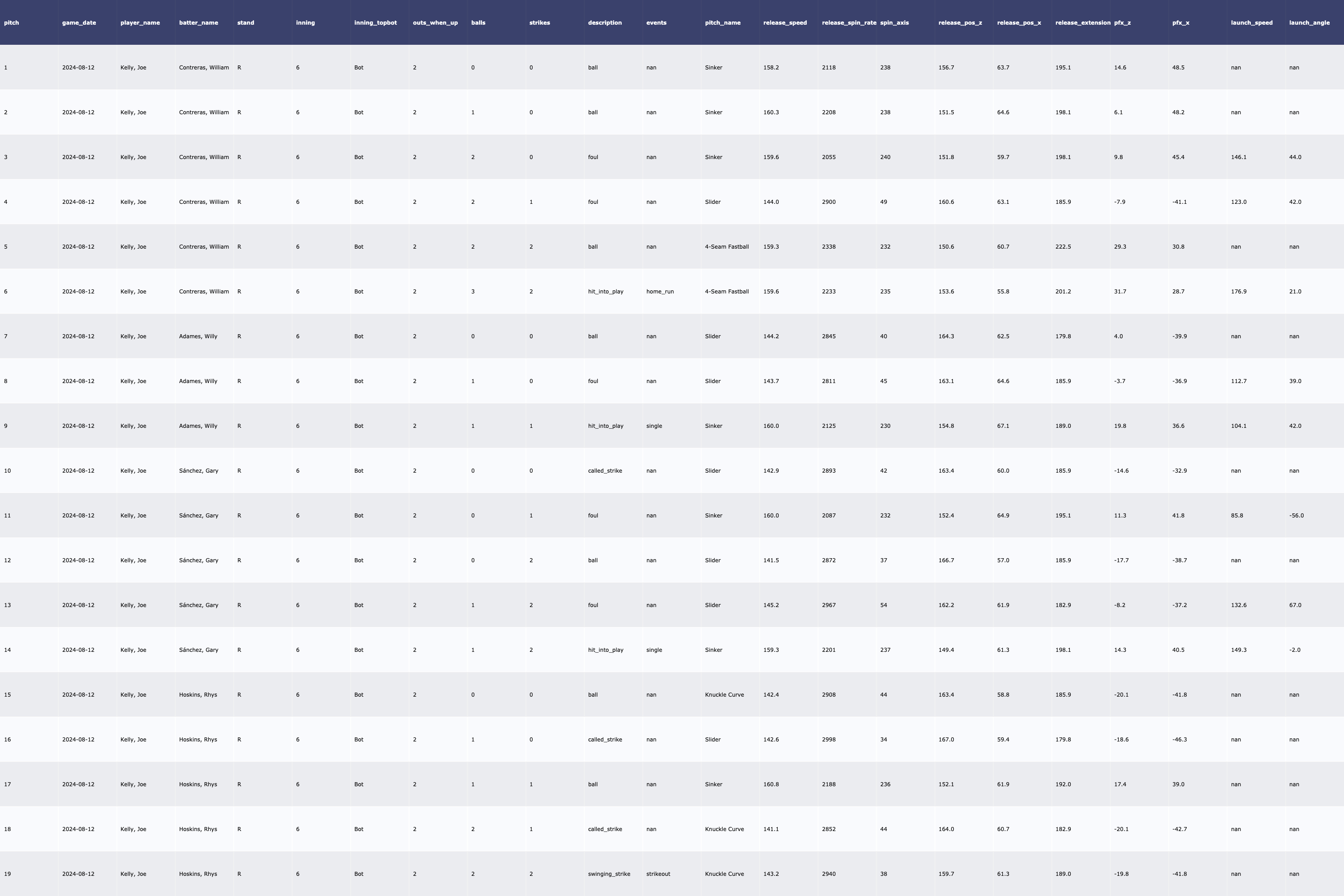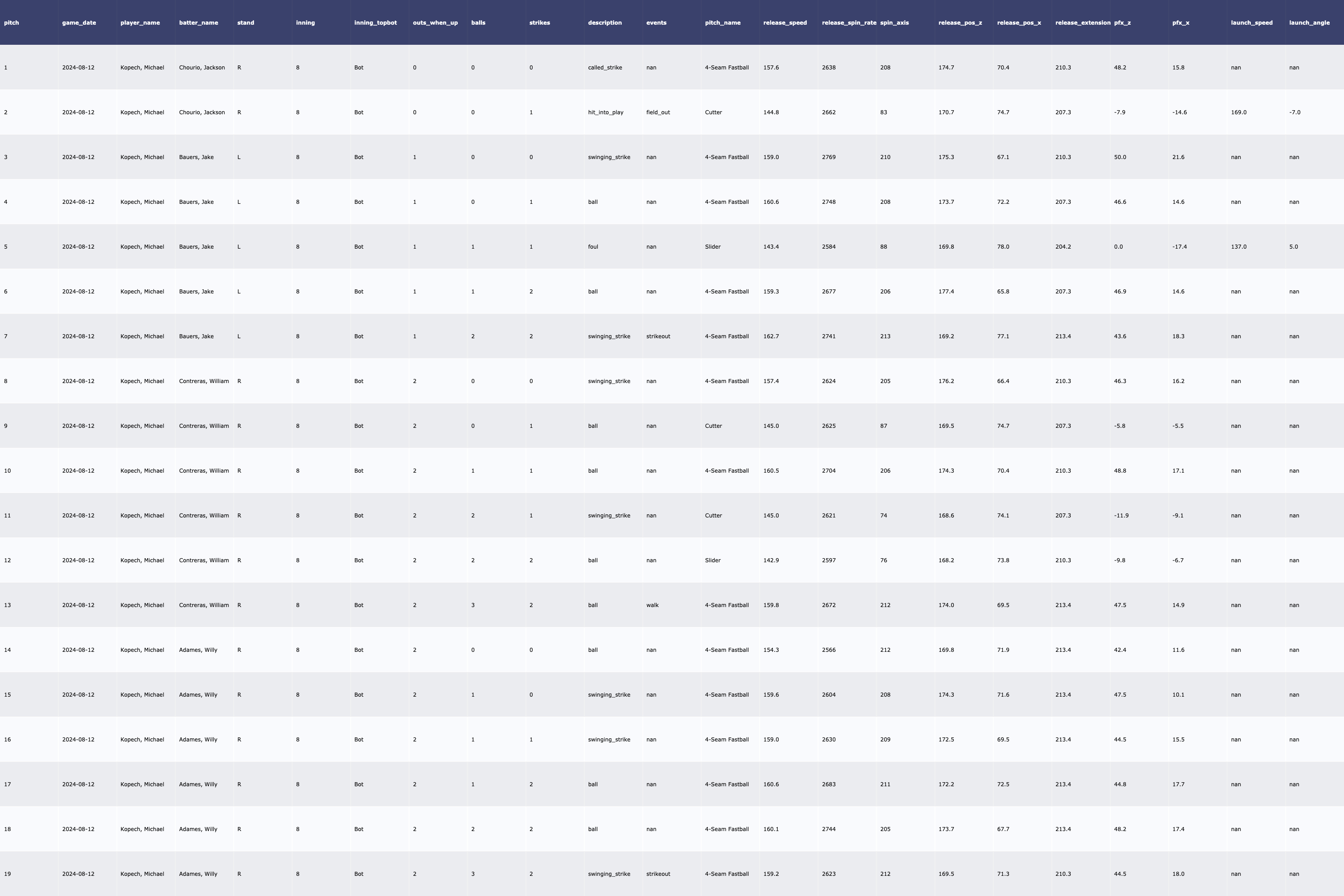 | 8/12 vs PIT 투수 데이터 (0) | 2024.08.13 |