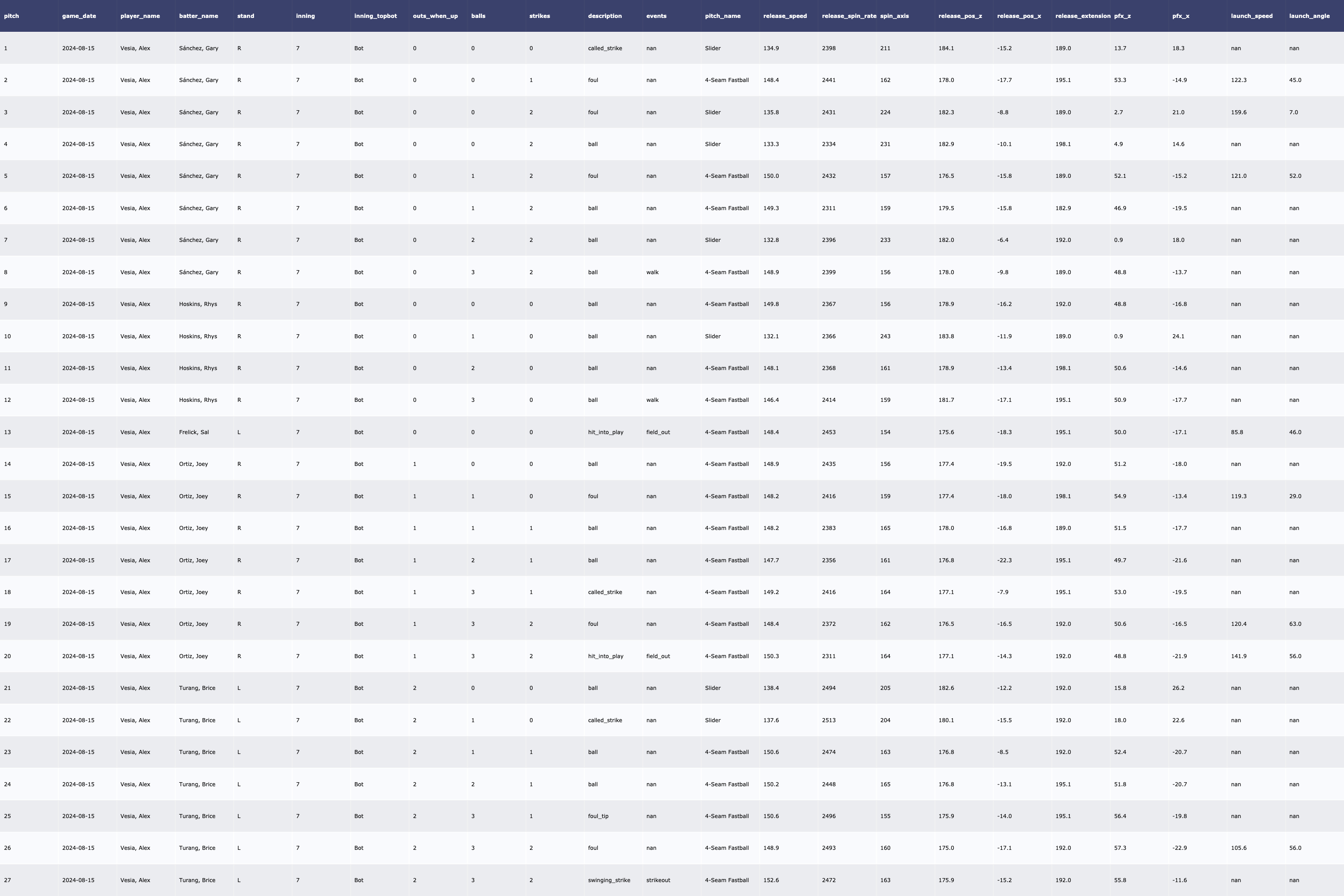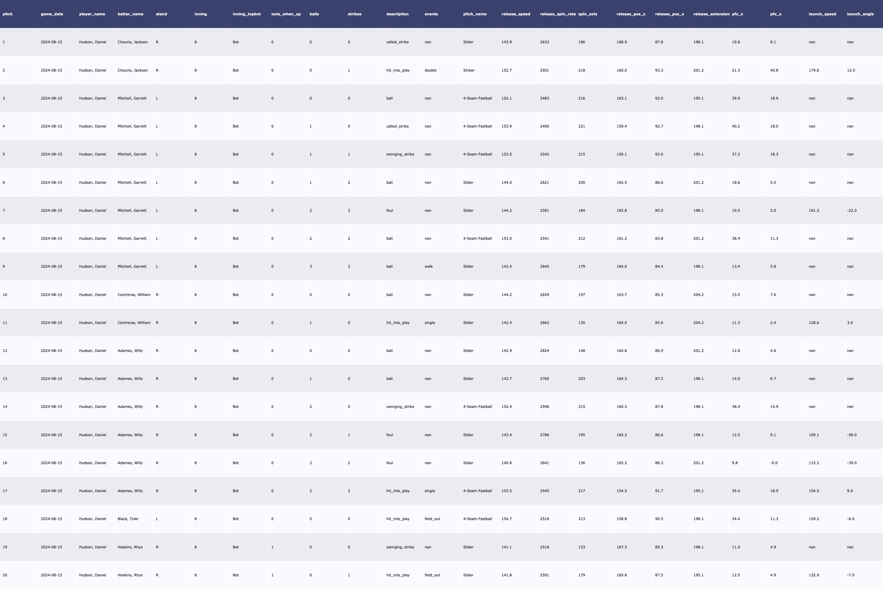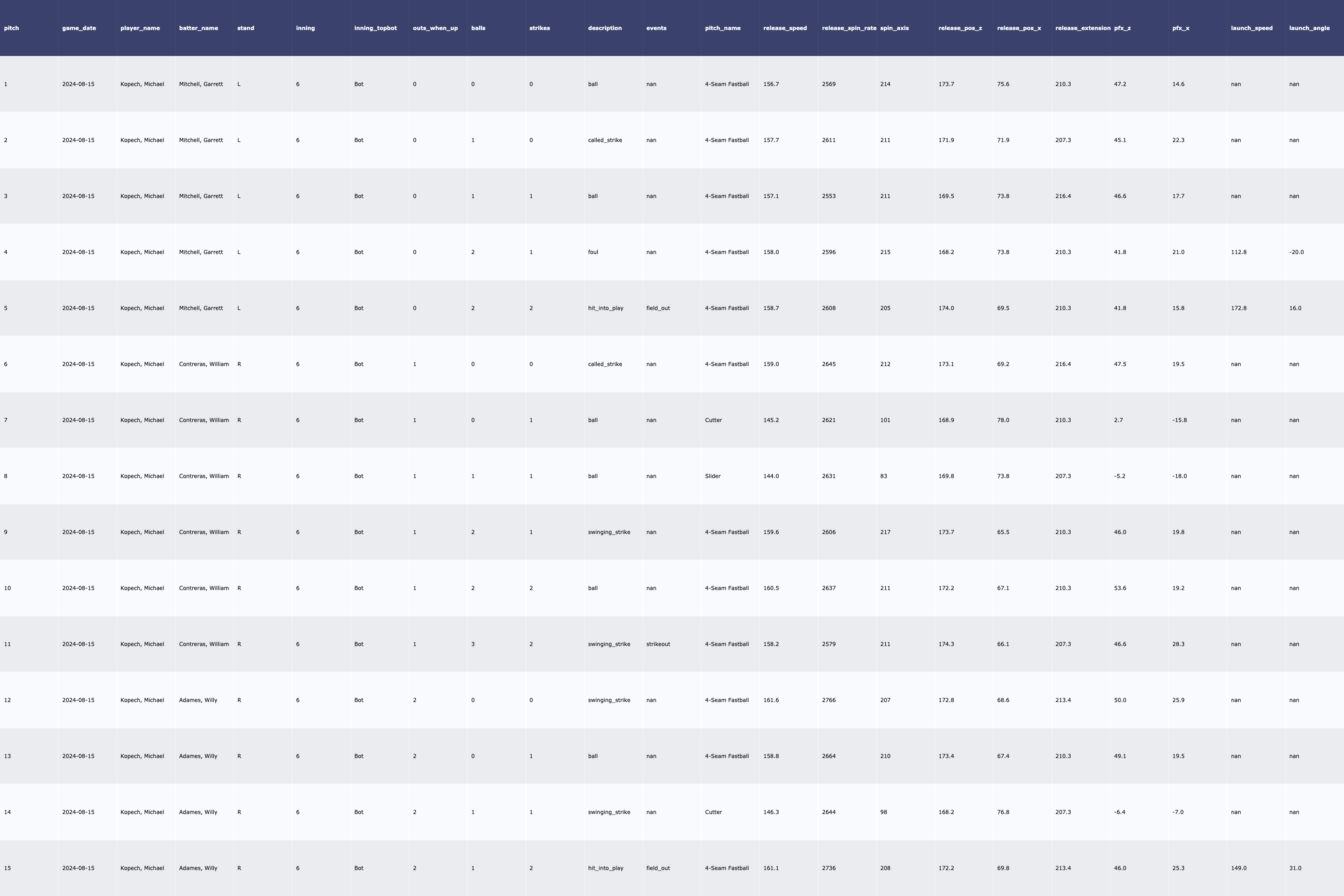 | 8/15 vs MIL 투수 데이터 (0) | 2024.08.16 |