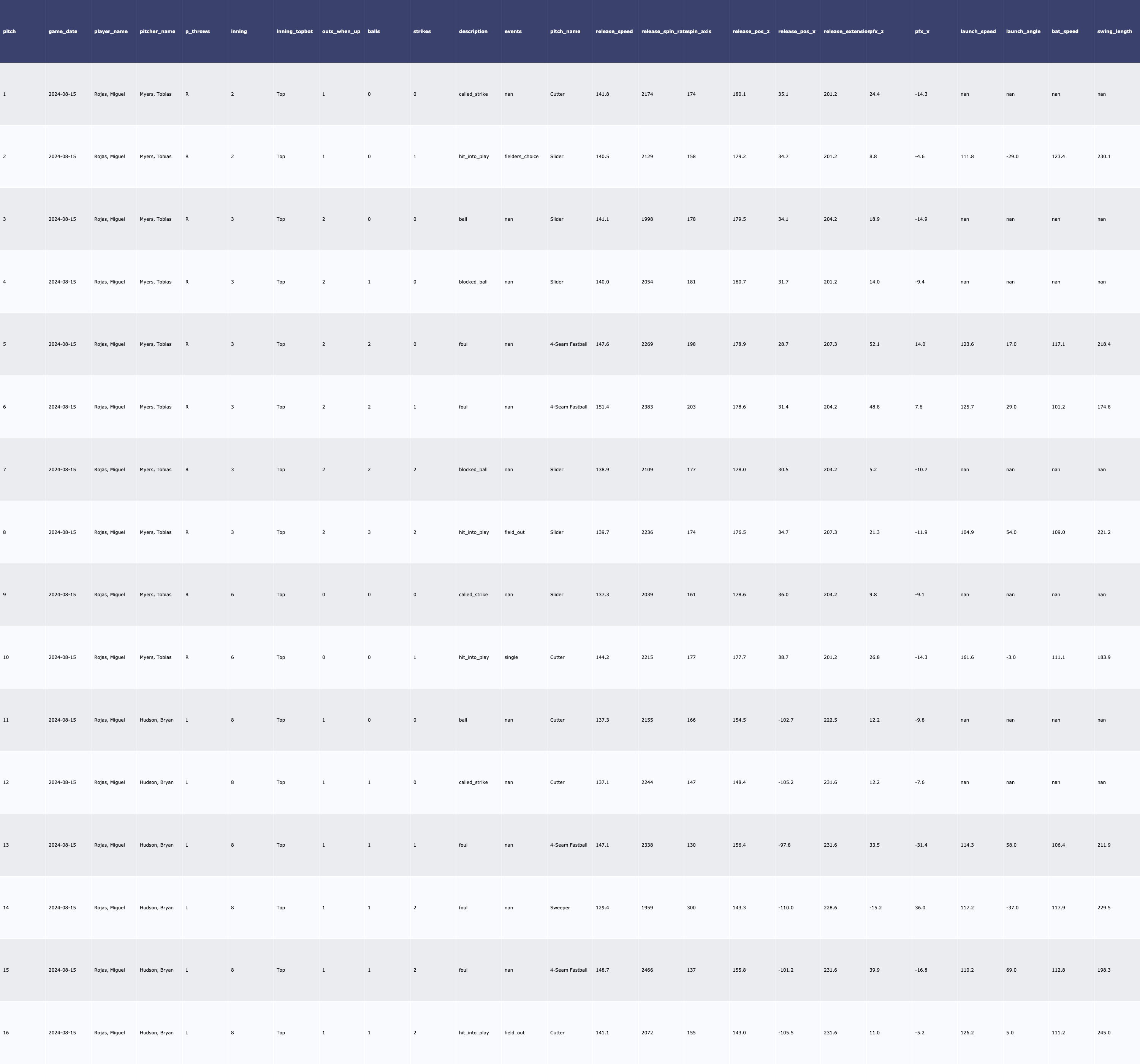 | 8/15 vs MIL 투수 데이터 (0) | 2024.08.16 |