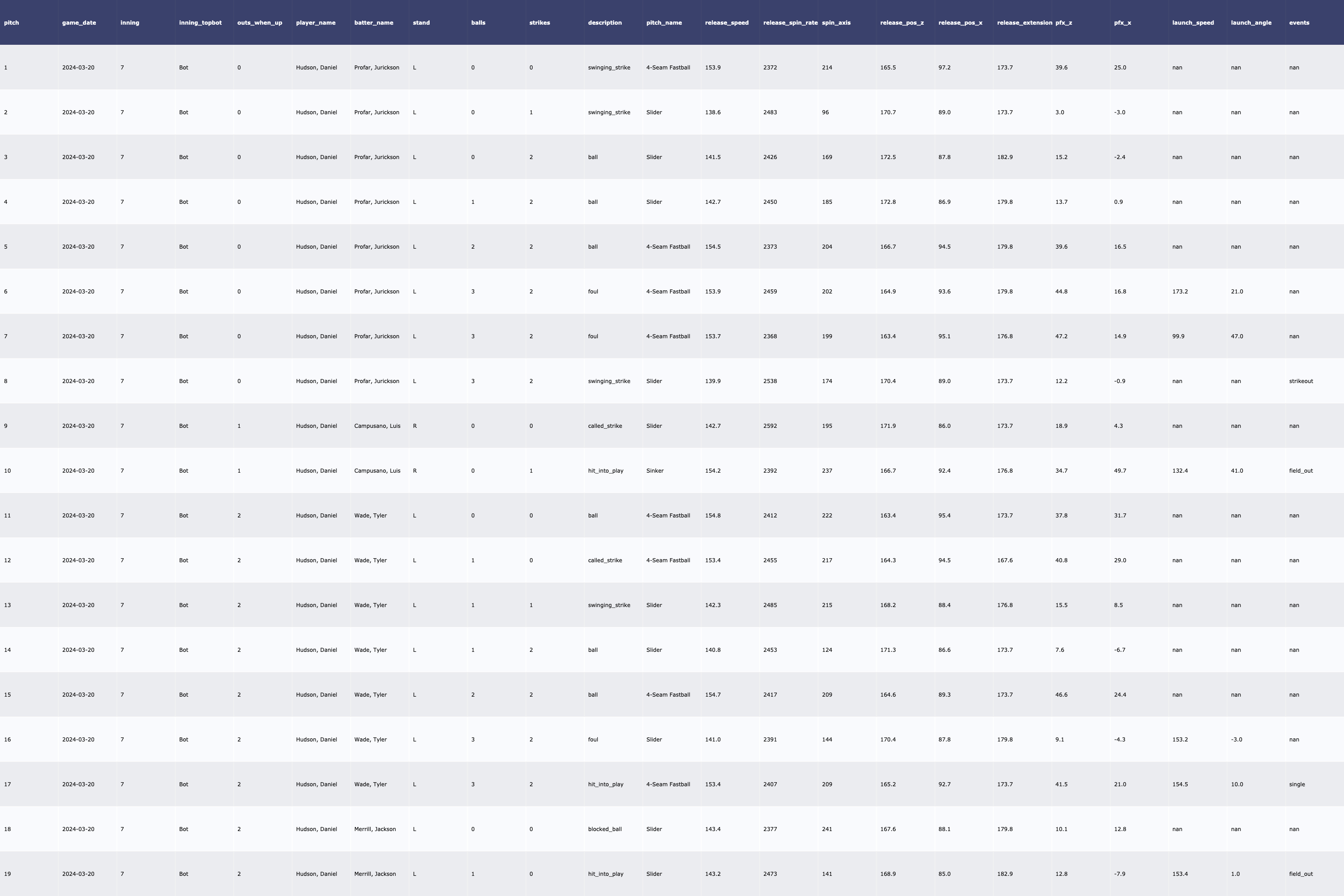 | [MLB/서울 시리즈 1차전] SD Padres 투수 트래킹 데이터 (2024-03-20) (0) | 2024.03.22 |