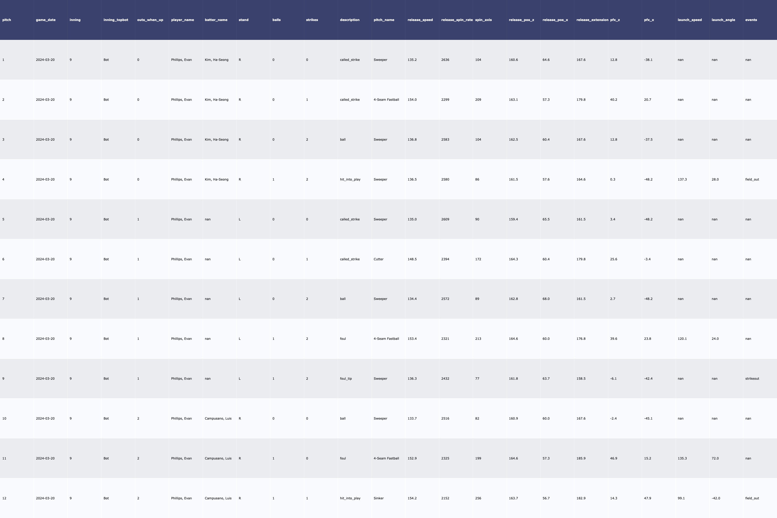 | [MLB/서울시리즈] Yu Darvish vs LA Dodgers (2023, Tracking Data) (0) | 2024.03.16 |