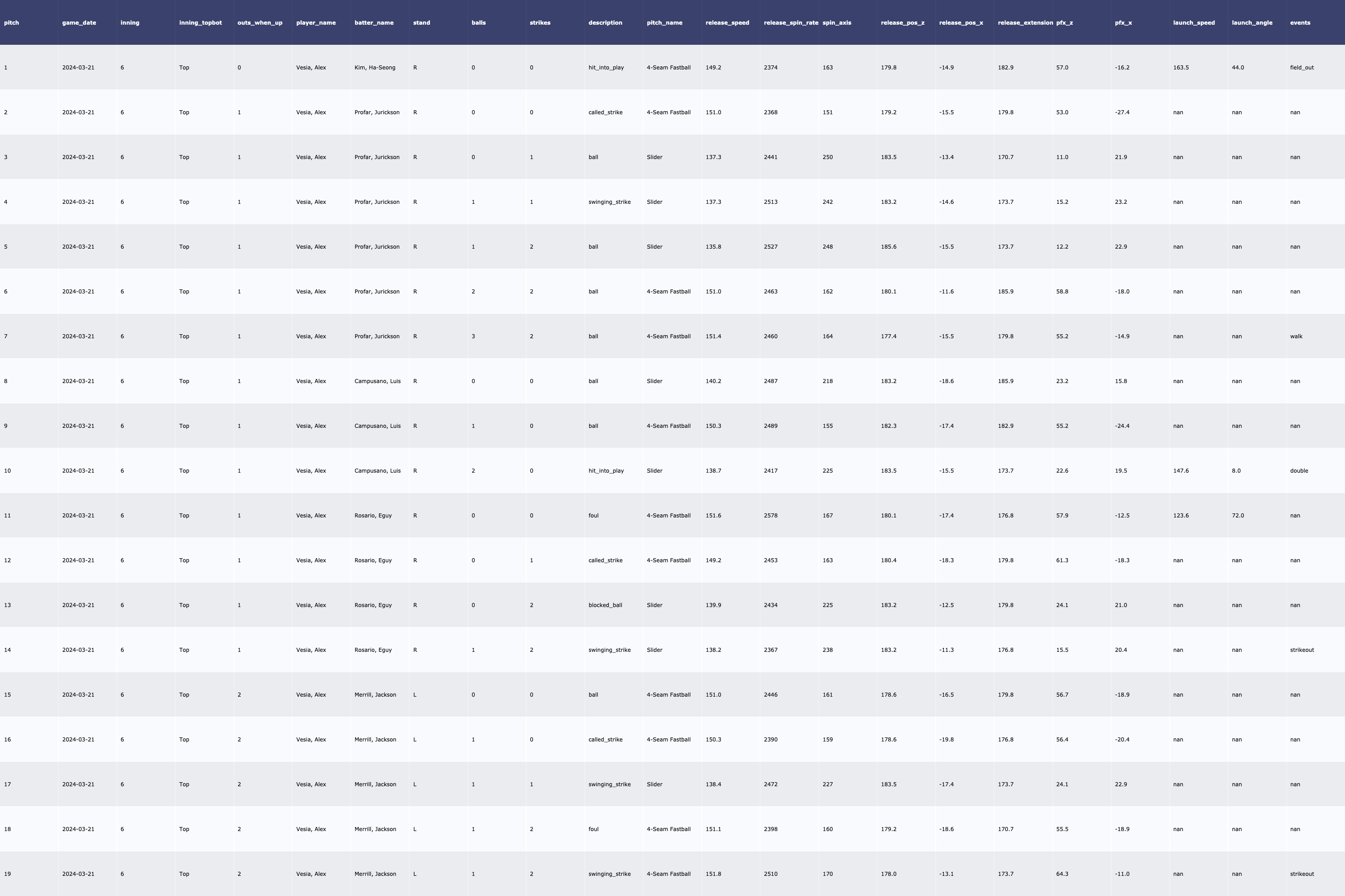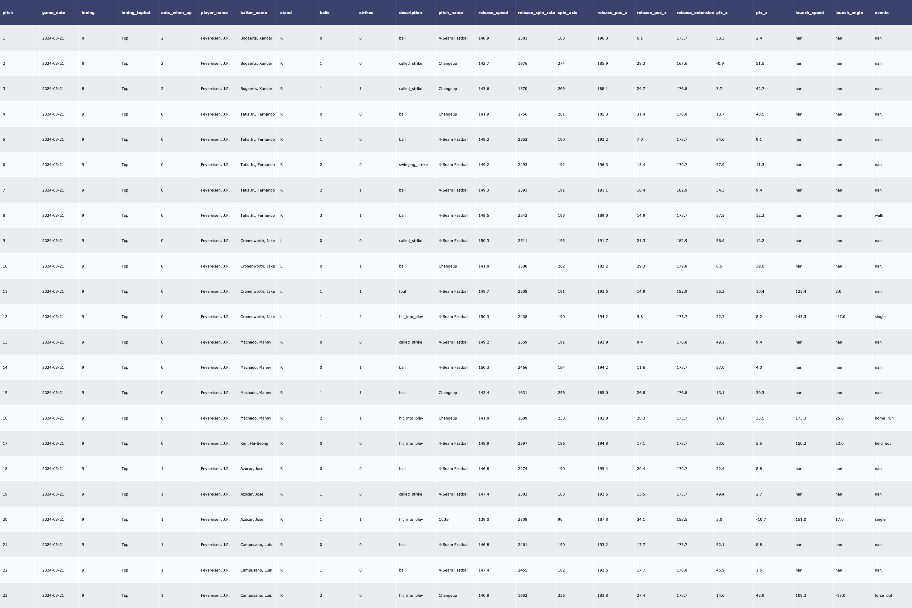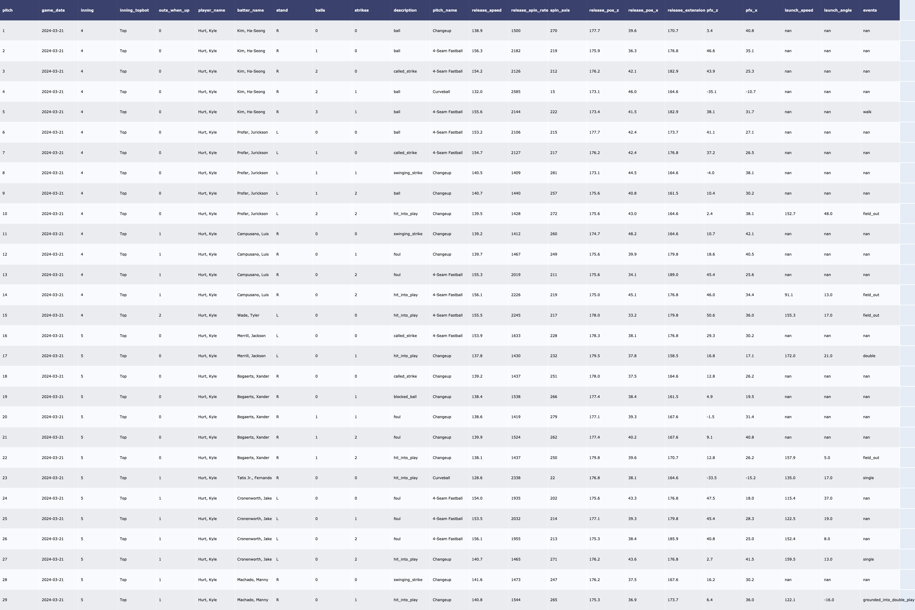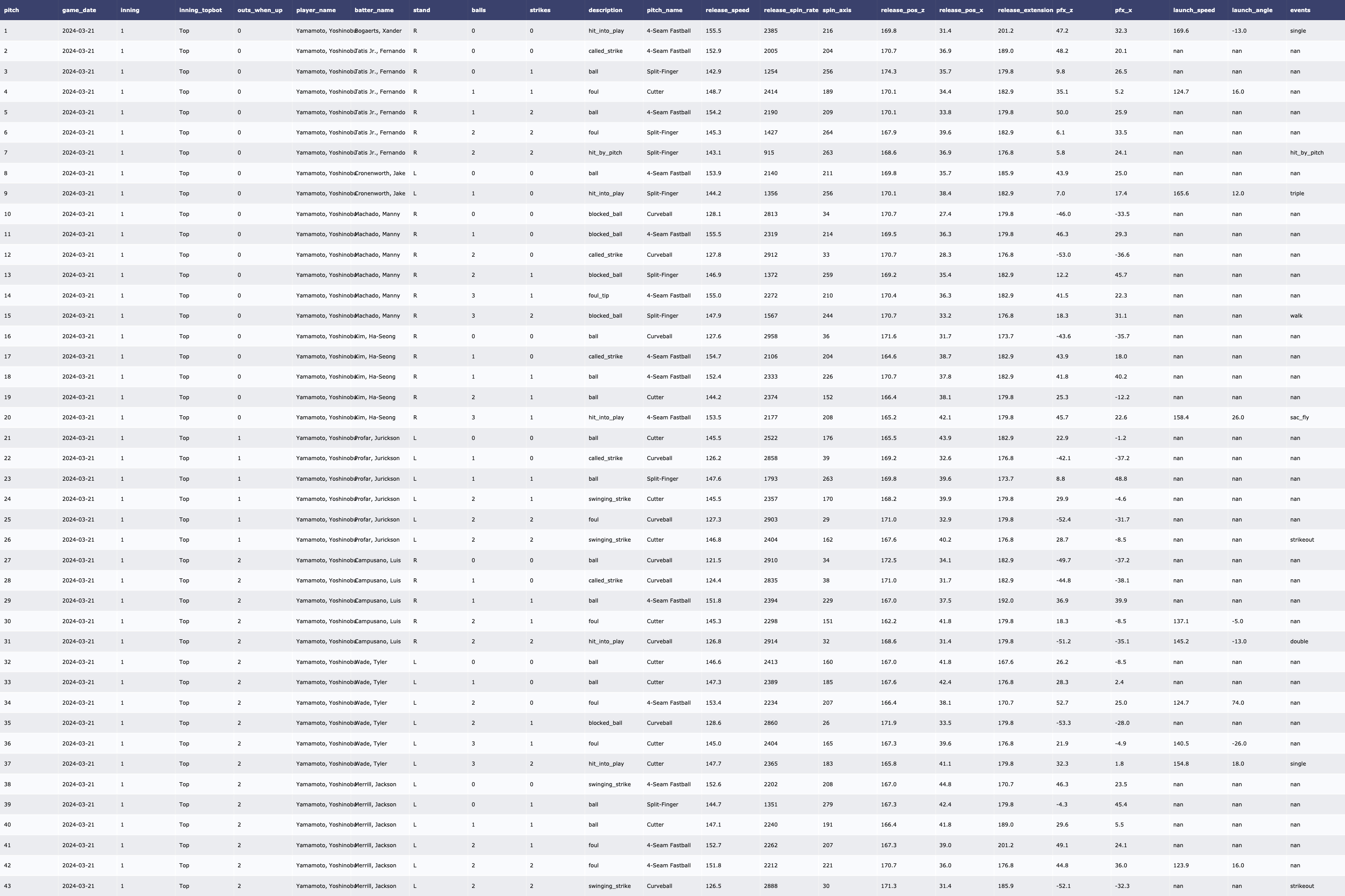 | [MLB/서울 시리즈 2차전] SD Padres 투수 트래킹 데이터 (2024-03-21) (0) | 2024.03.23 |