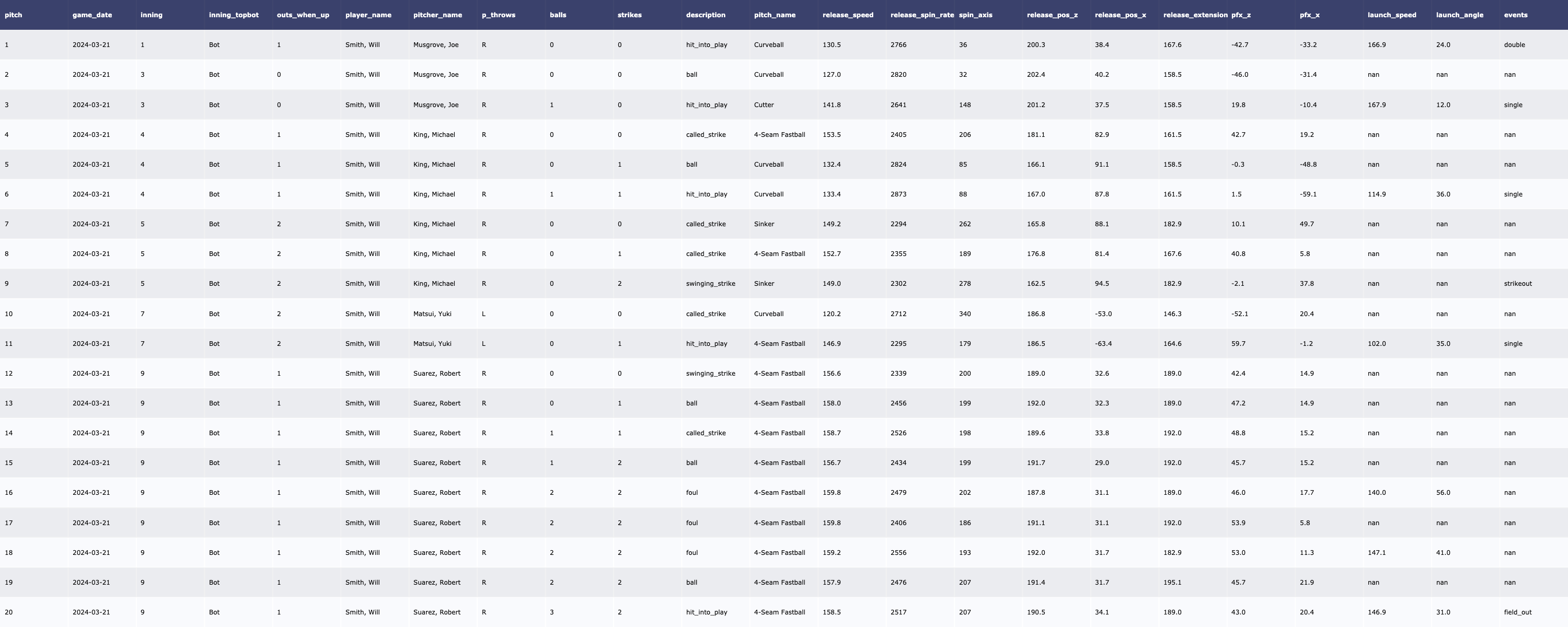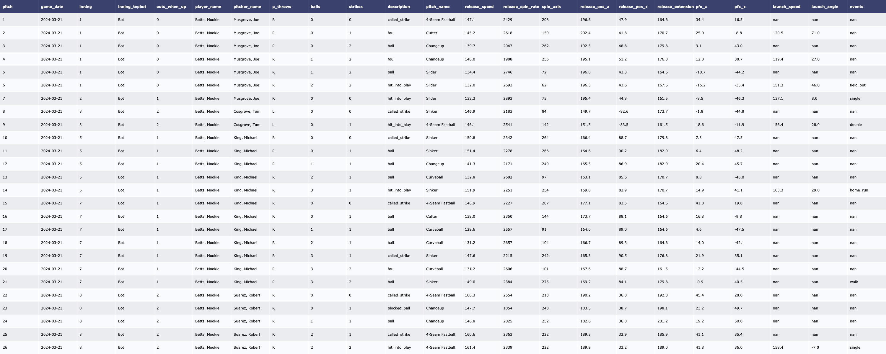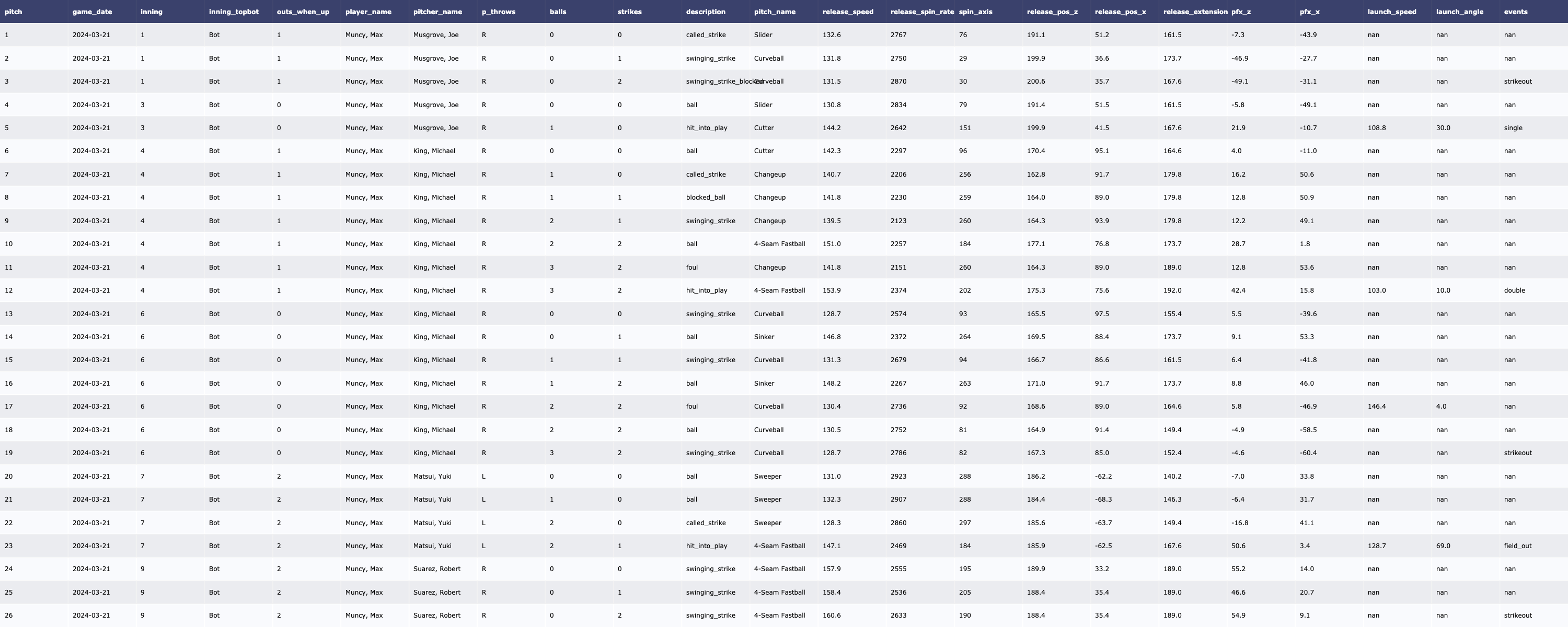 | [MLB/서울 시리즈 2차전] SD Padres 투수 트래킹 데이터 (2024-03-21) (0) | 2024.03.23 |