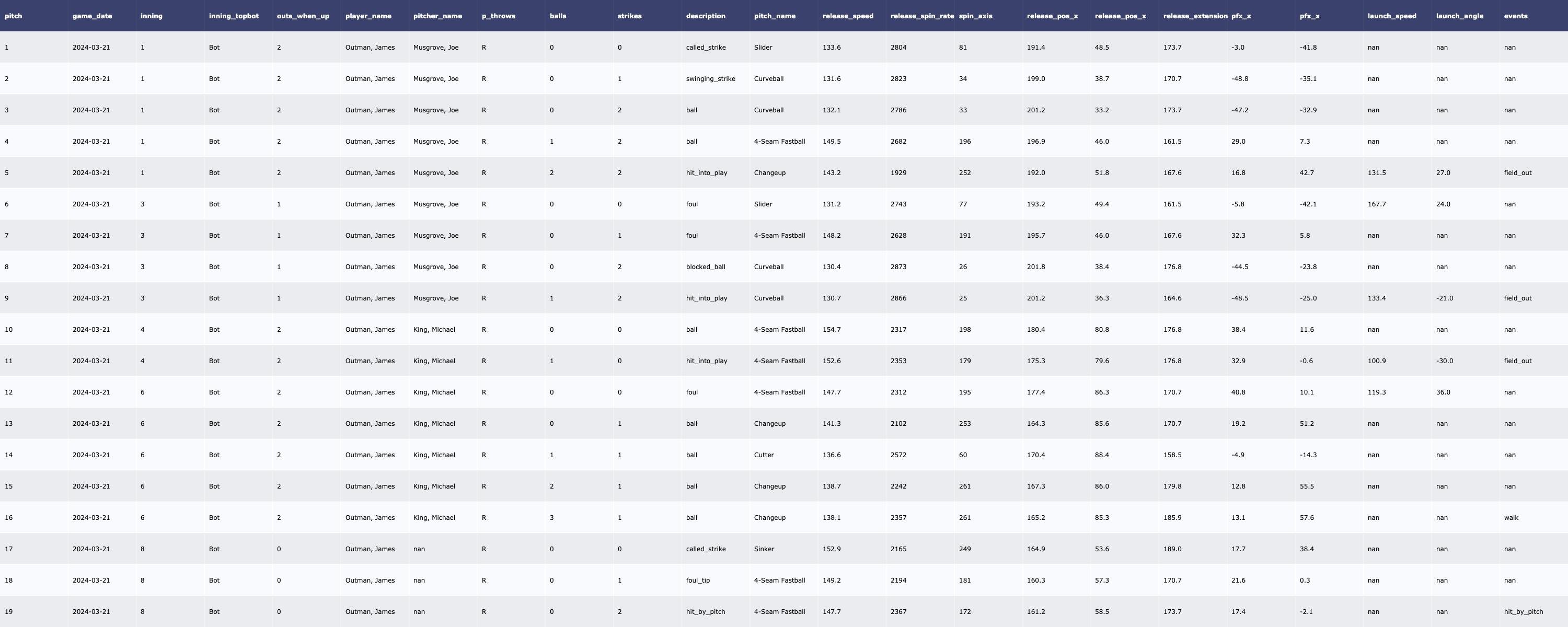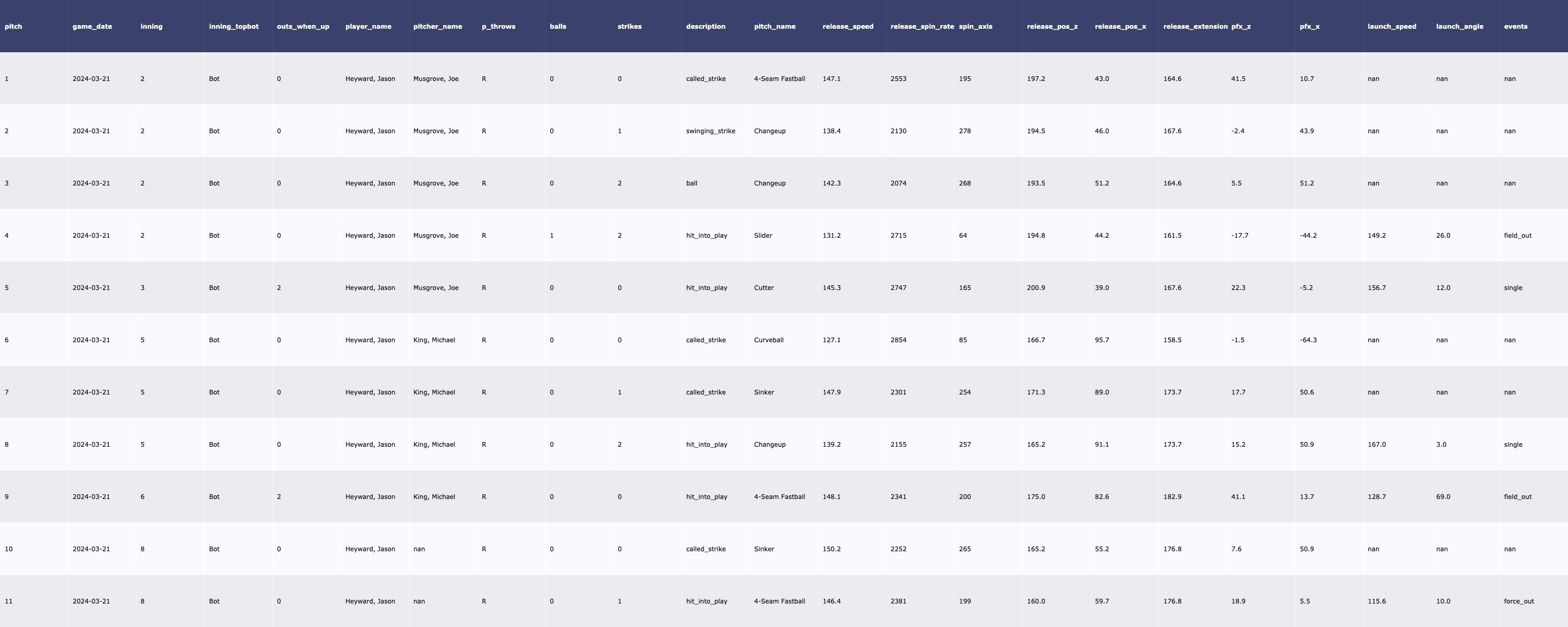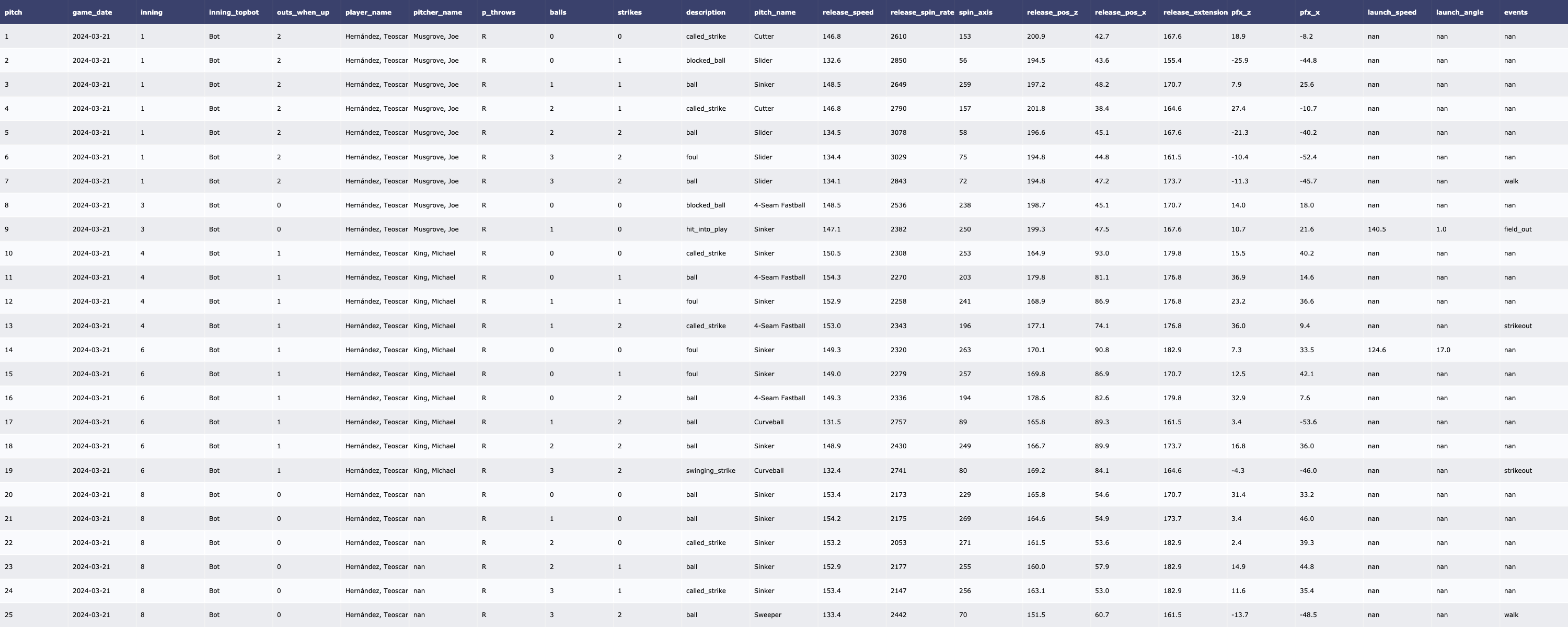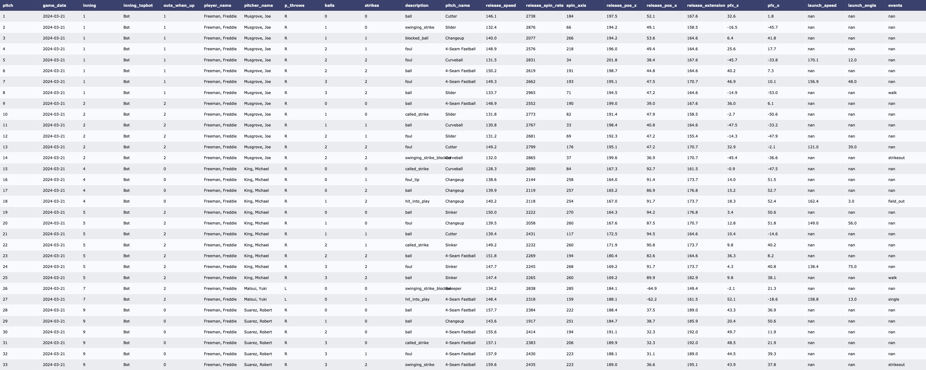 | [MLB/서울 시리즈 2차전] SD Padres 투수 트래킹 데이터 (2024-03-21) (0) | 2024.03.23 |