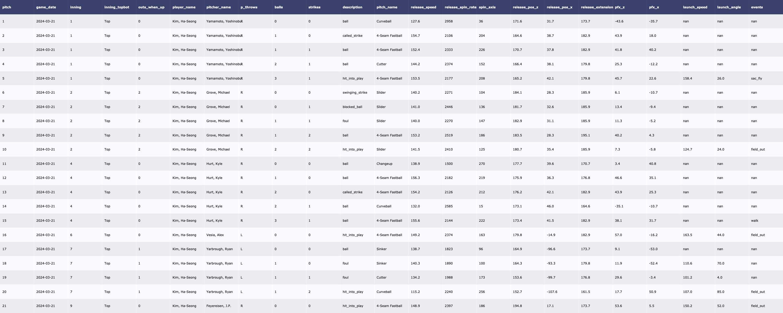 | [MLB/서울 시리즈 2차전] LA Dodgers 투수 트래킹 데이터 (2024-03-21) (0) | 2024.03.23 |