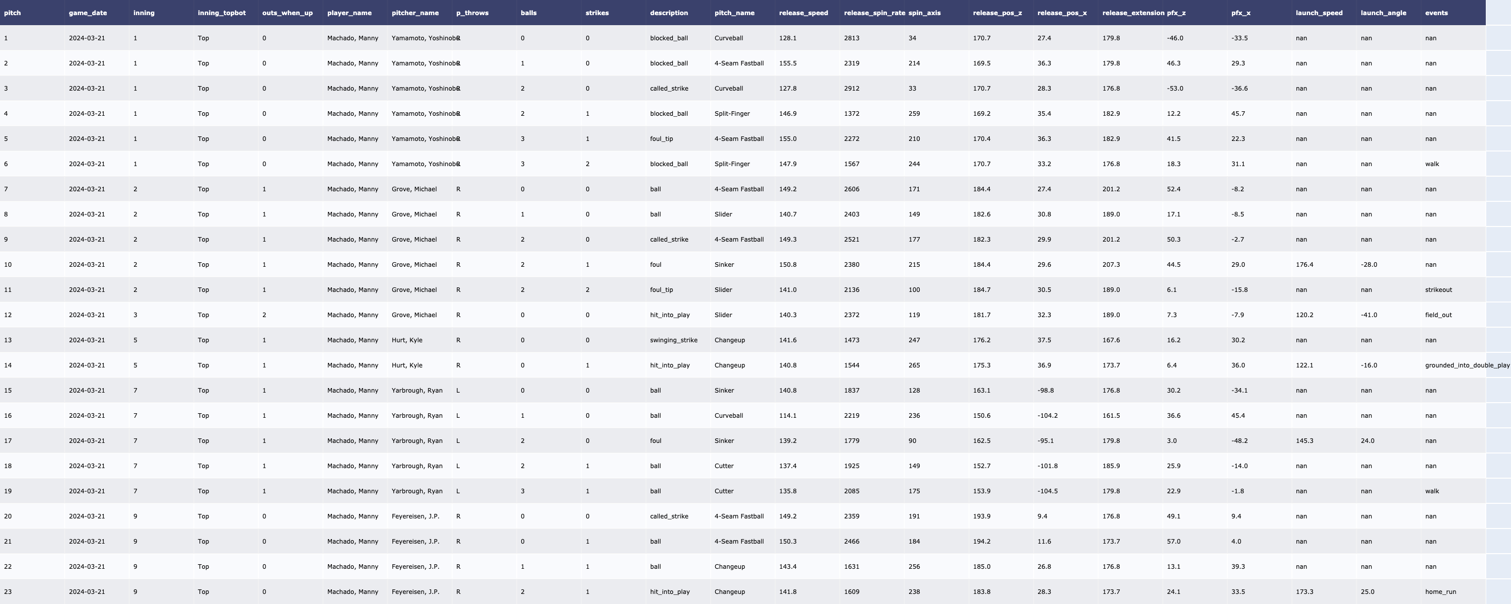 | [MLB/서울 시리즈 2차전] SD Padres 투수 트래킹 데이터 (2024-03-21) (0) | 2024.03.23 |