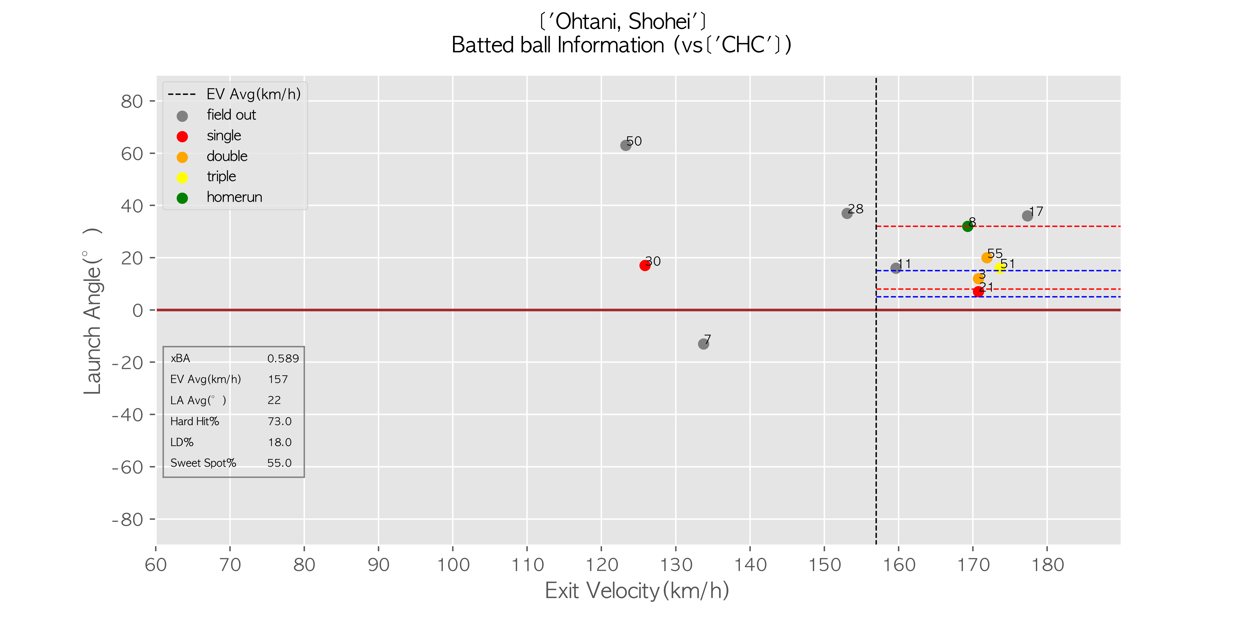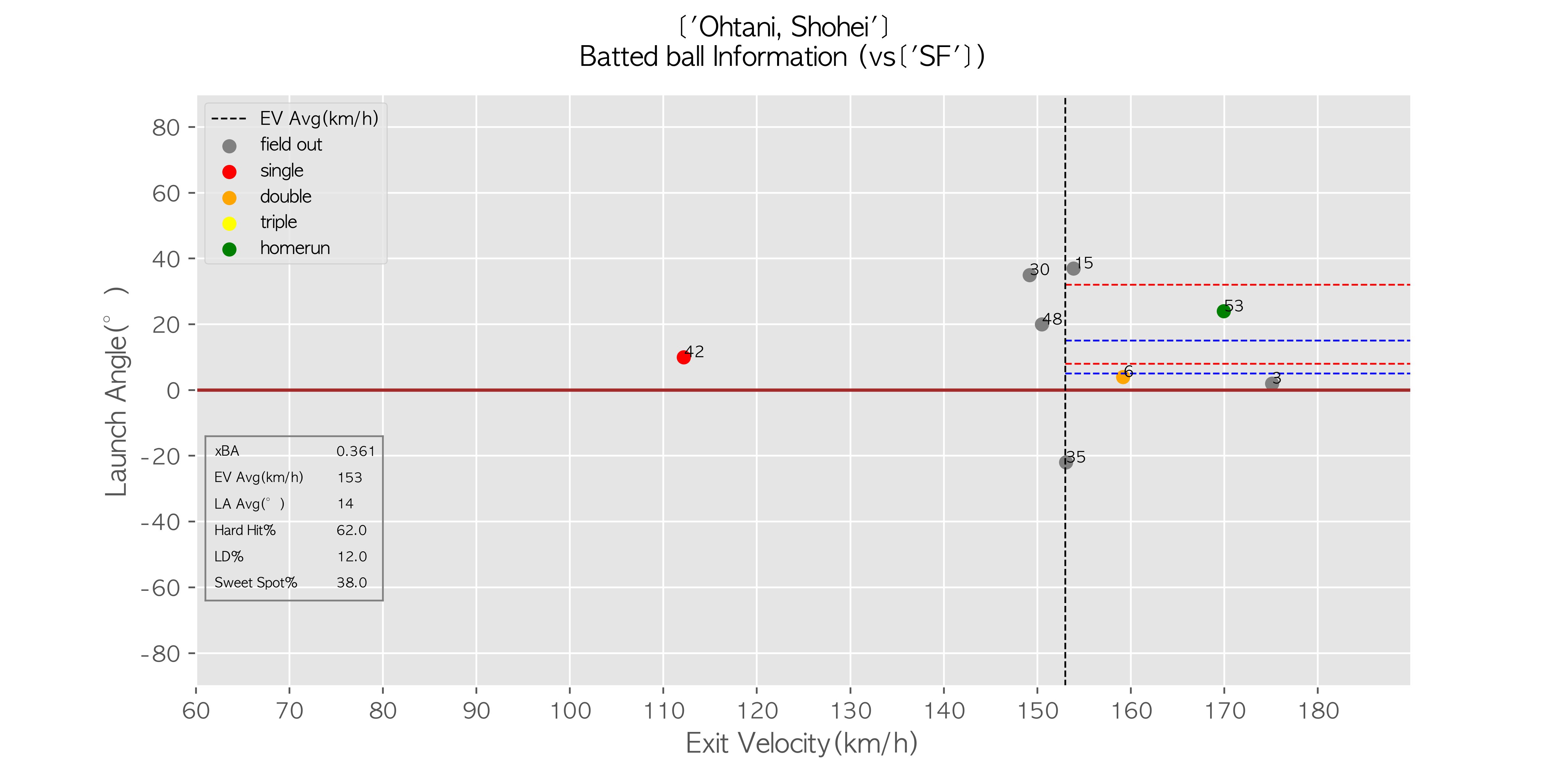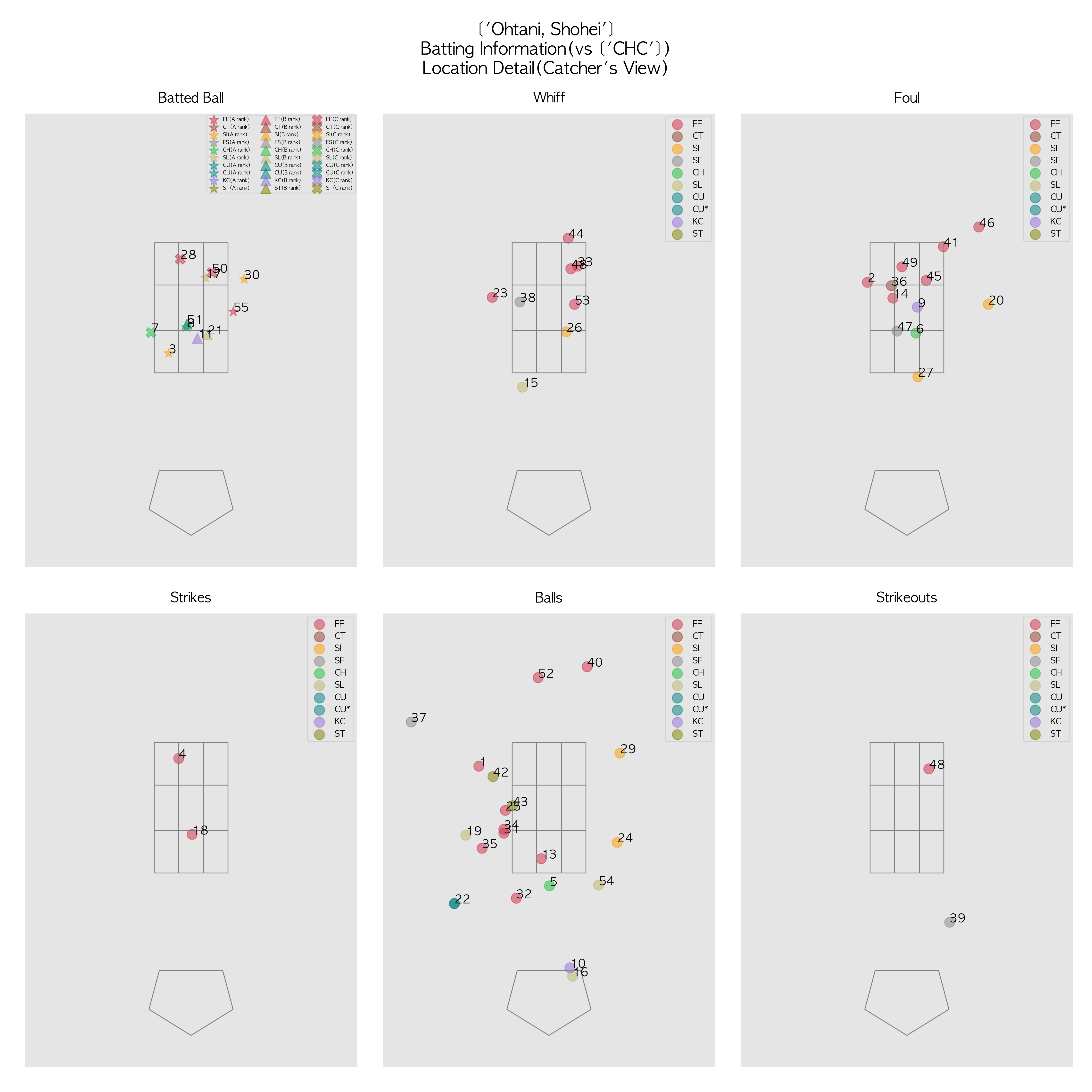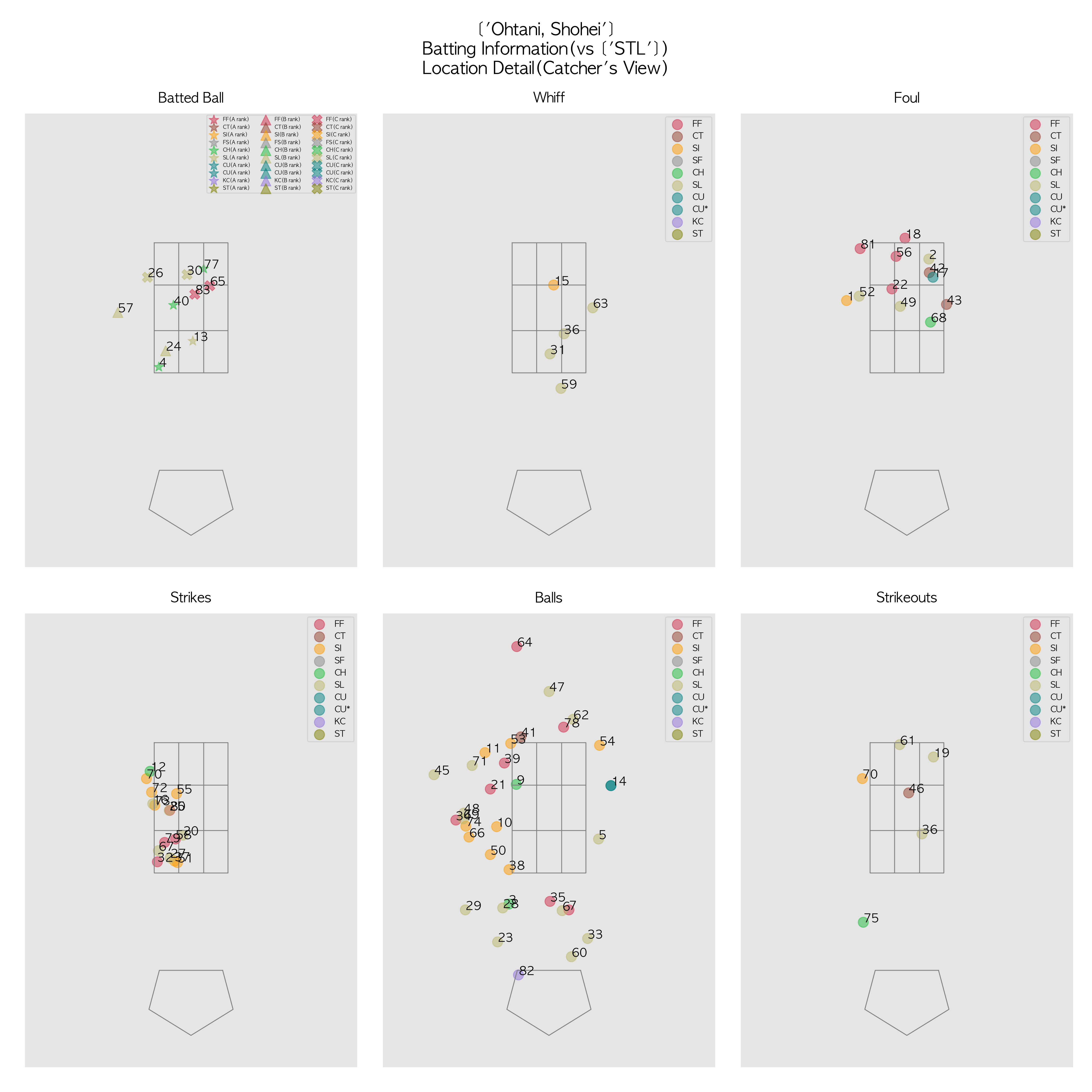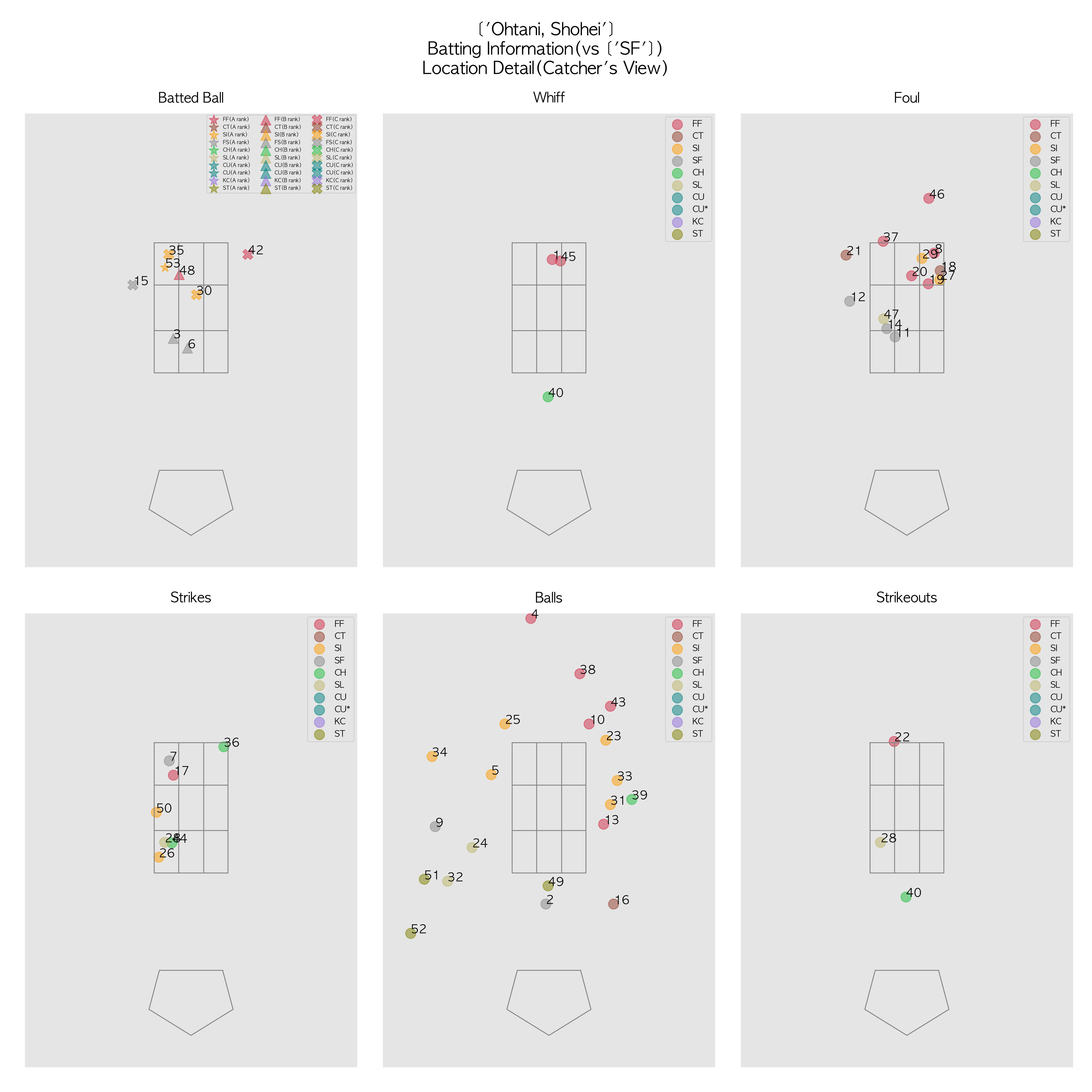 * Batting Information - Batted ball에 찍힌 숫자는 Batted ball Information에 찍힌 숫자와 연결됩니다.