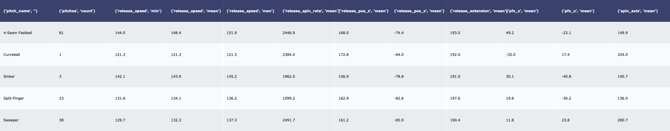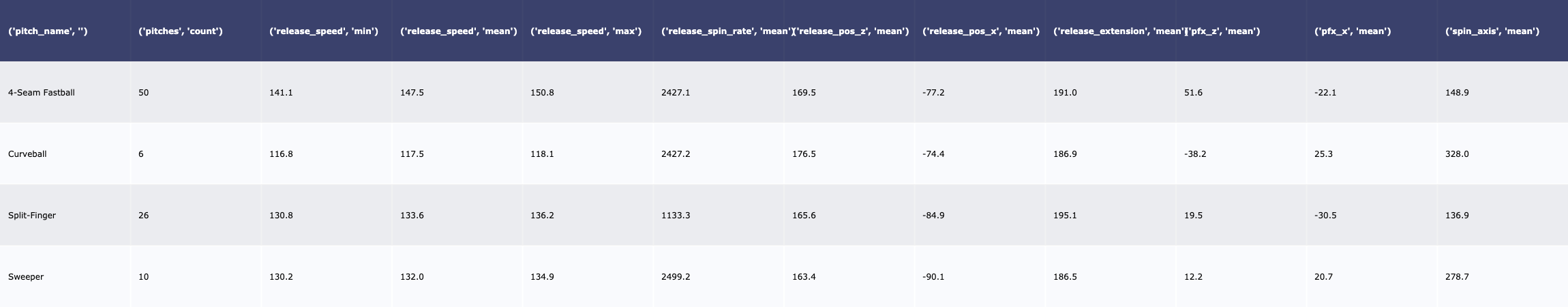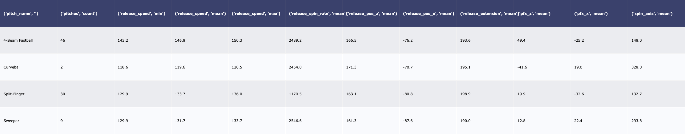 7이닝 3피안타 무실점 피칭했고 스플리터 구사비율이 다른 경기에 비해 높았다.