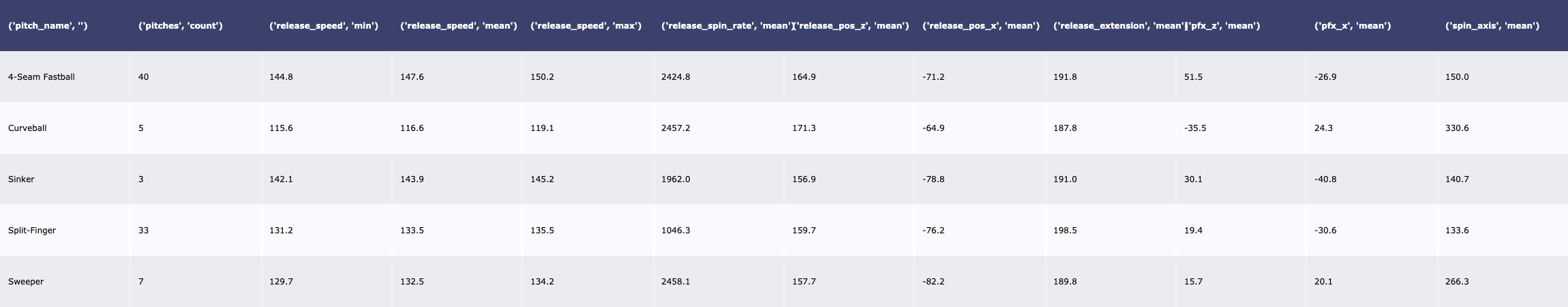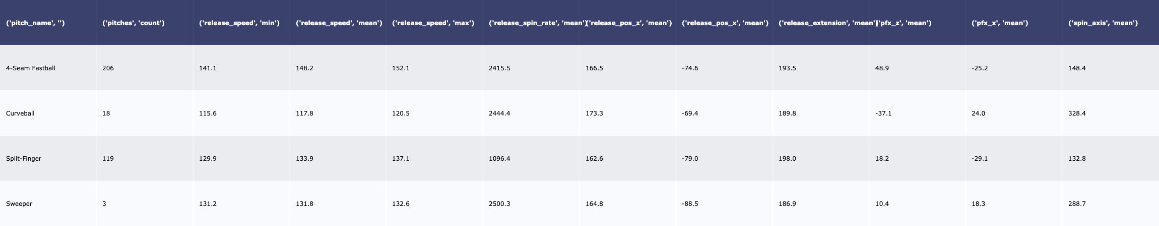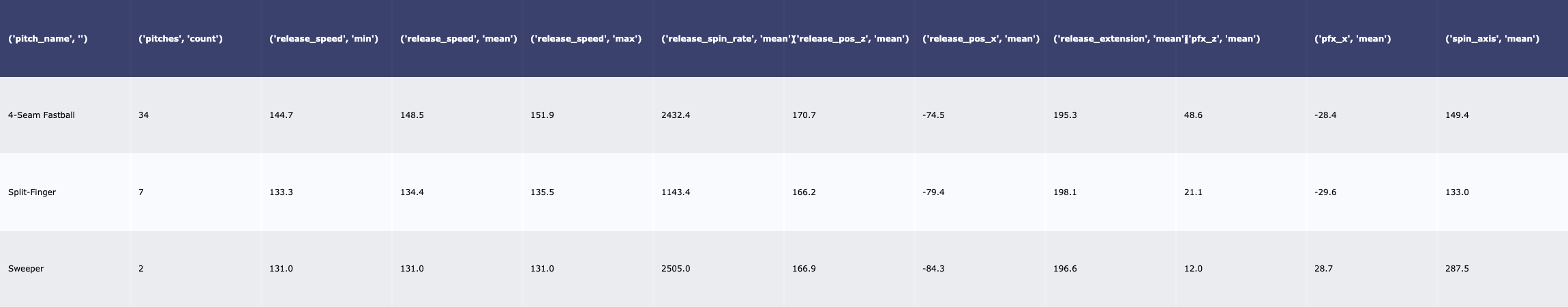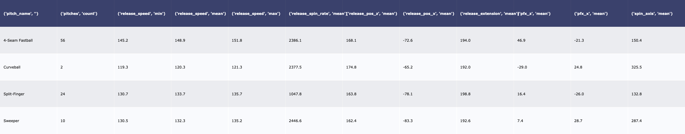 7이닝 3피안타 무실점 피칭했고 스플리터 구사비율이 다른 경기에 비해 높았다.