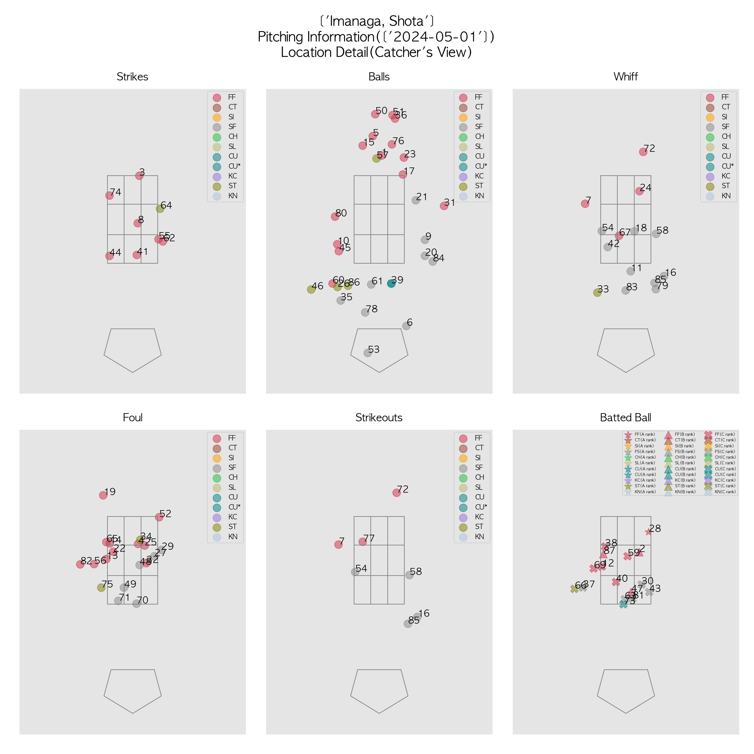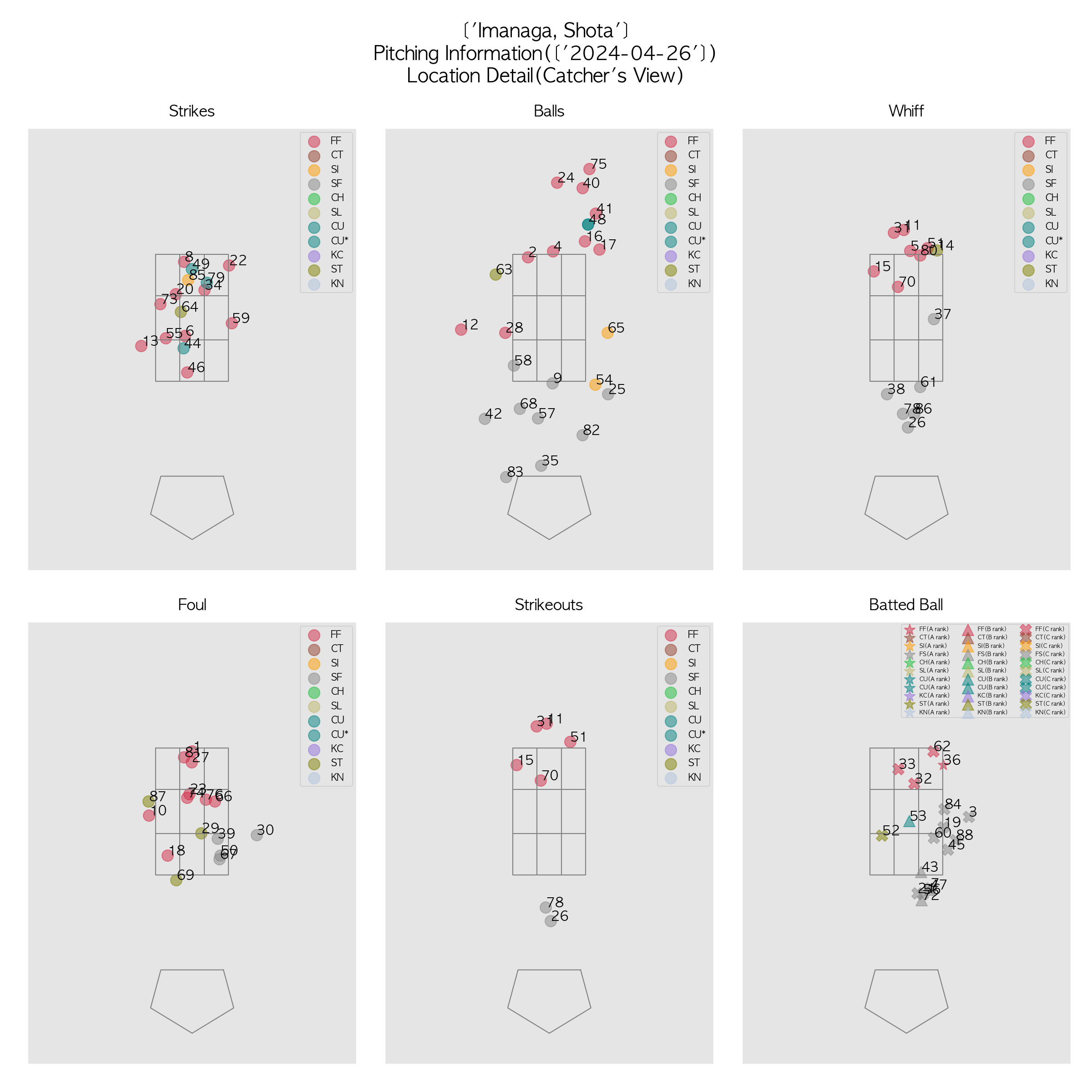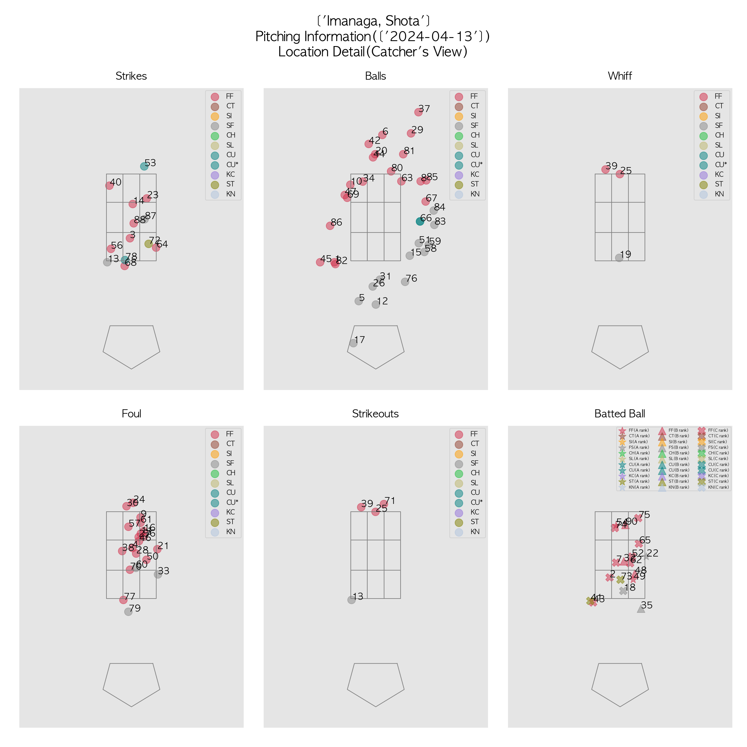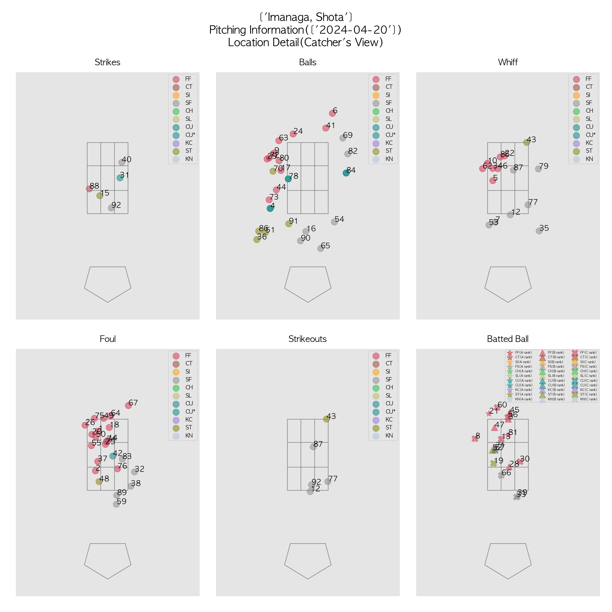 하이존 포심 헛스윙 유도가 많았고 탈삼진 결정구 대부분이 스플리터였다.