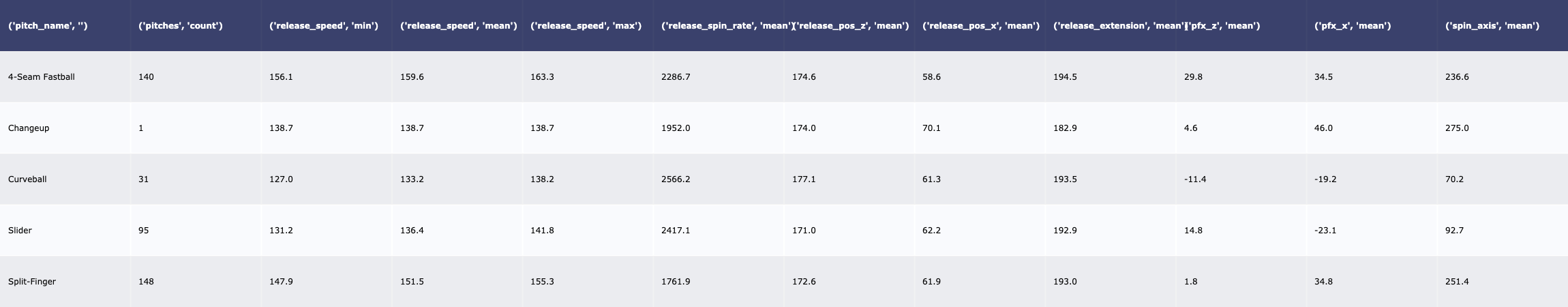 포심 스플리터 구속 차 10km/h 정도이고 터널링을 공유하는 측면이 있어서 스플리터를 다목적으로 구사하는 듯 하다
