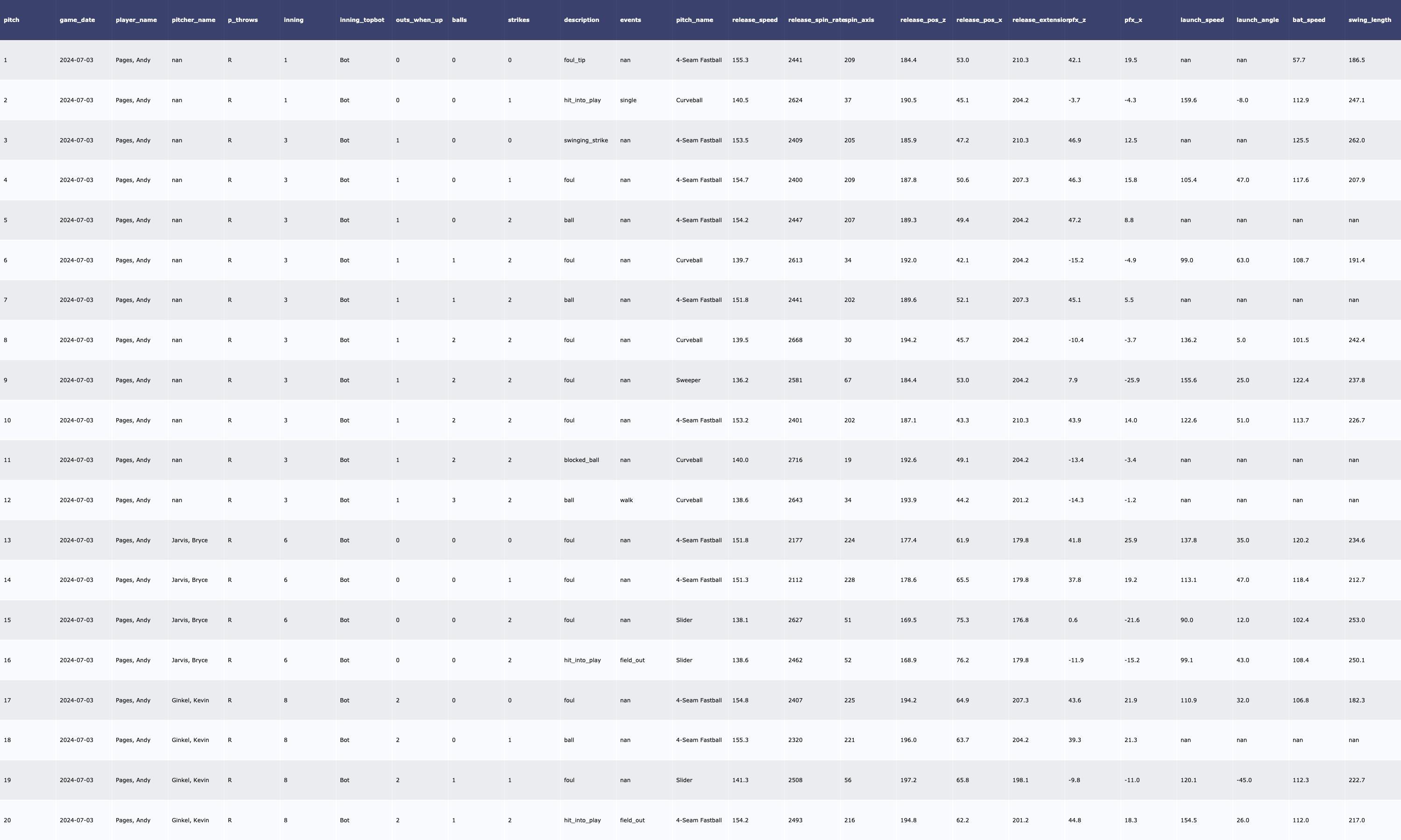 | 7/3 vs ARI 투수 데이터 (0) | 2024.07.03 |