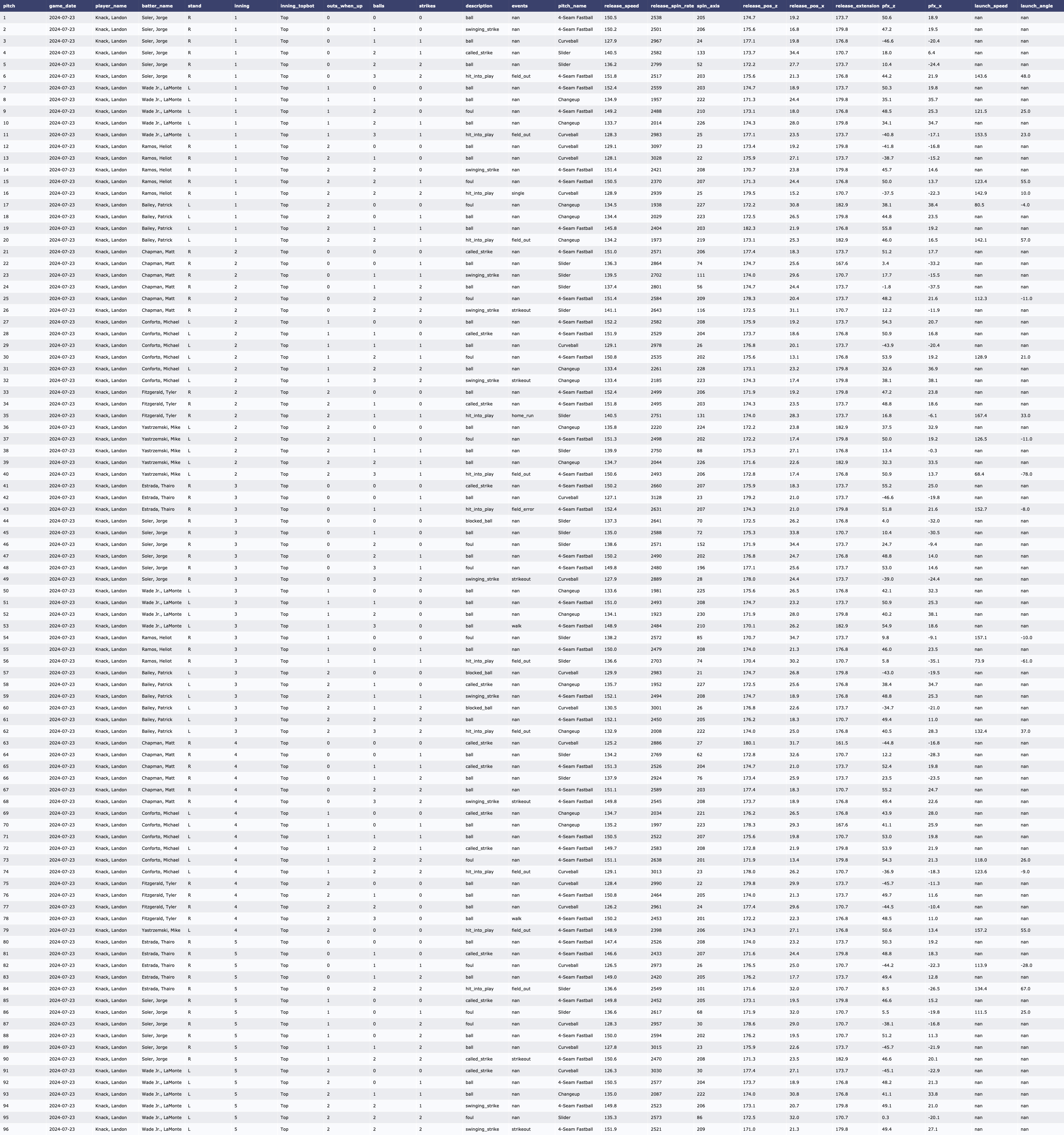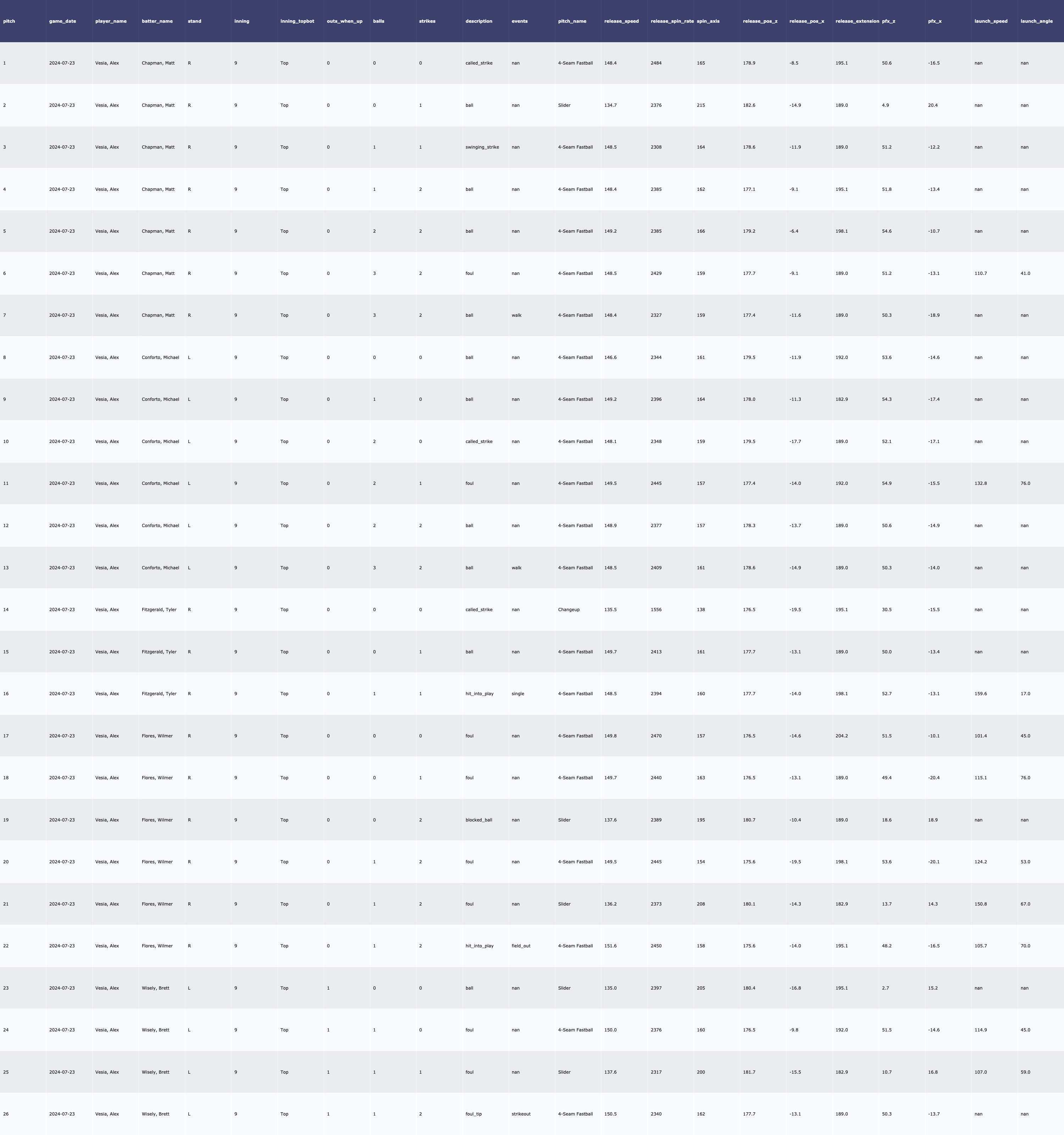 | 7/23 vs SF 투수 데이터 (0) | 2024.07.24 |