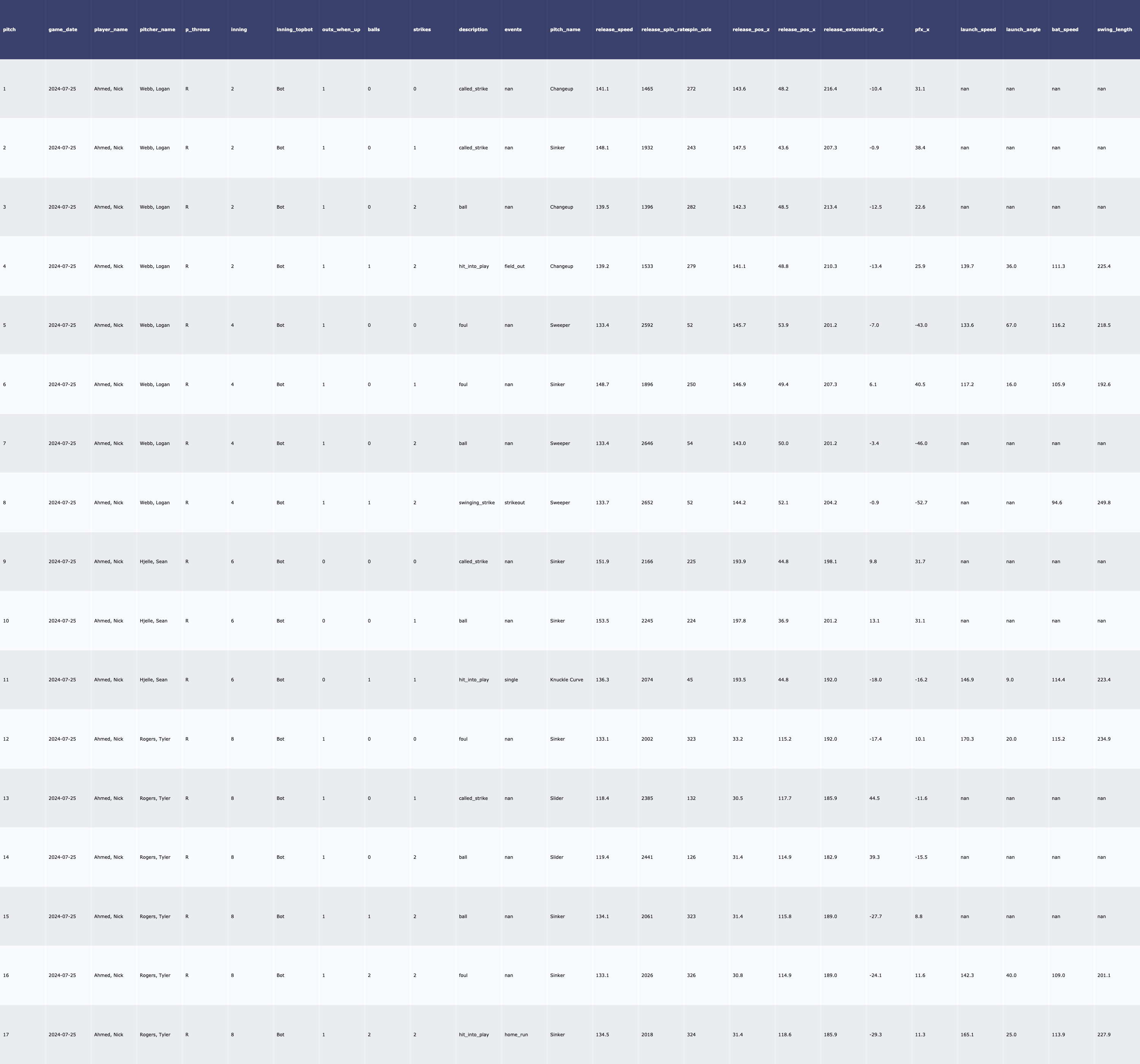 | 7/27 vs HOU 투수 데이터 (0) | 2024.07.28 |