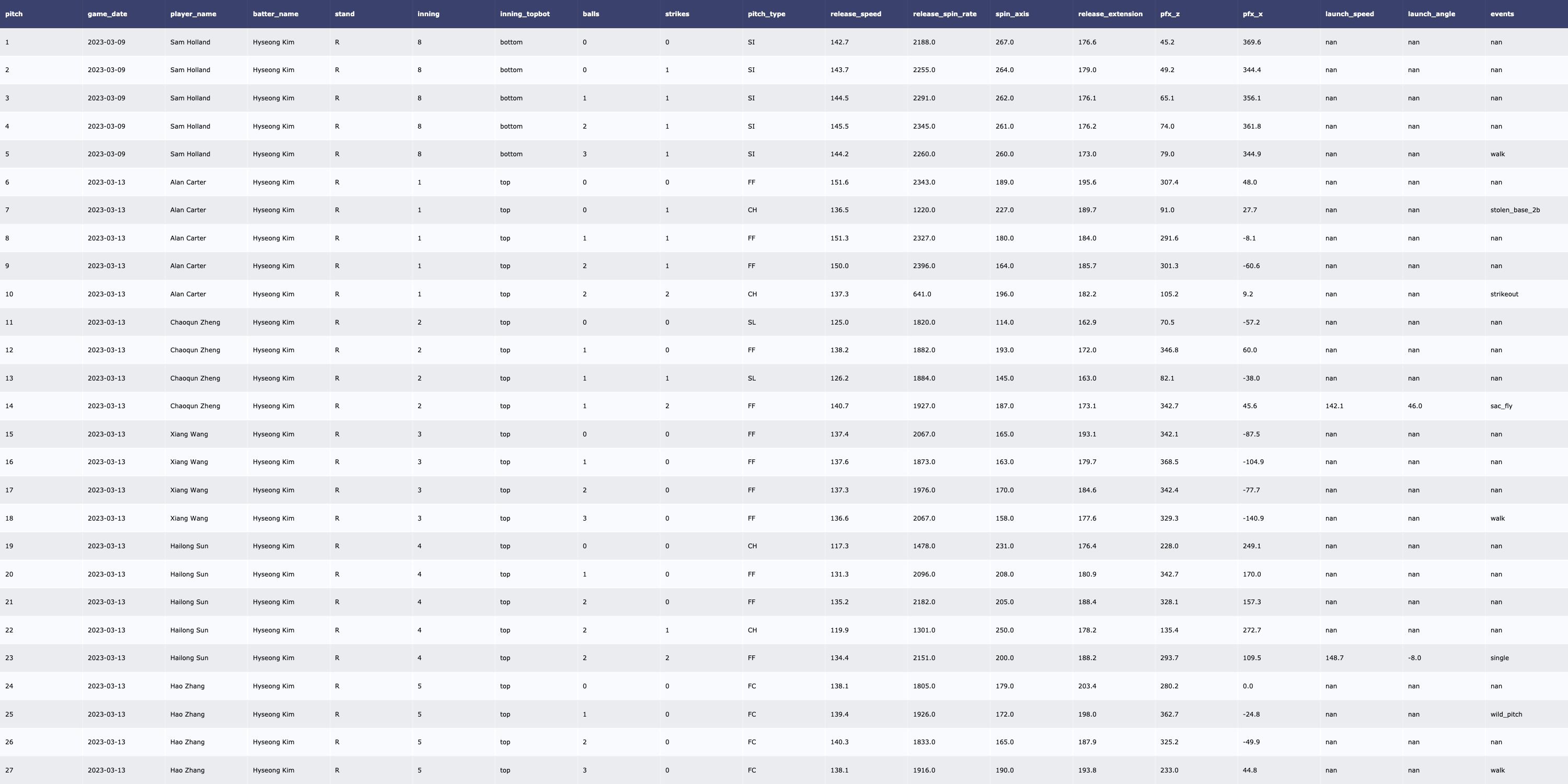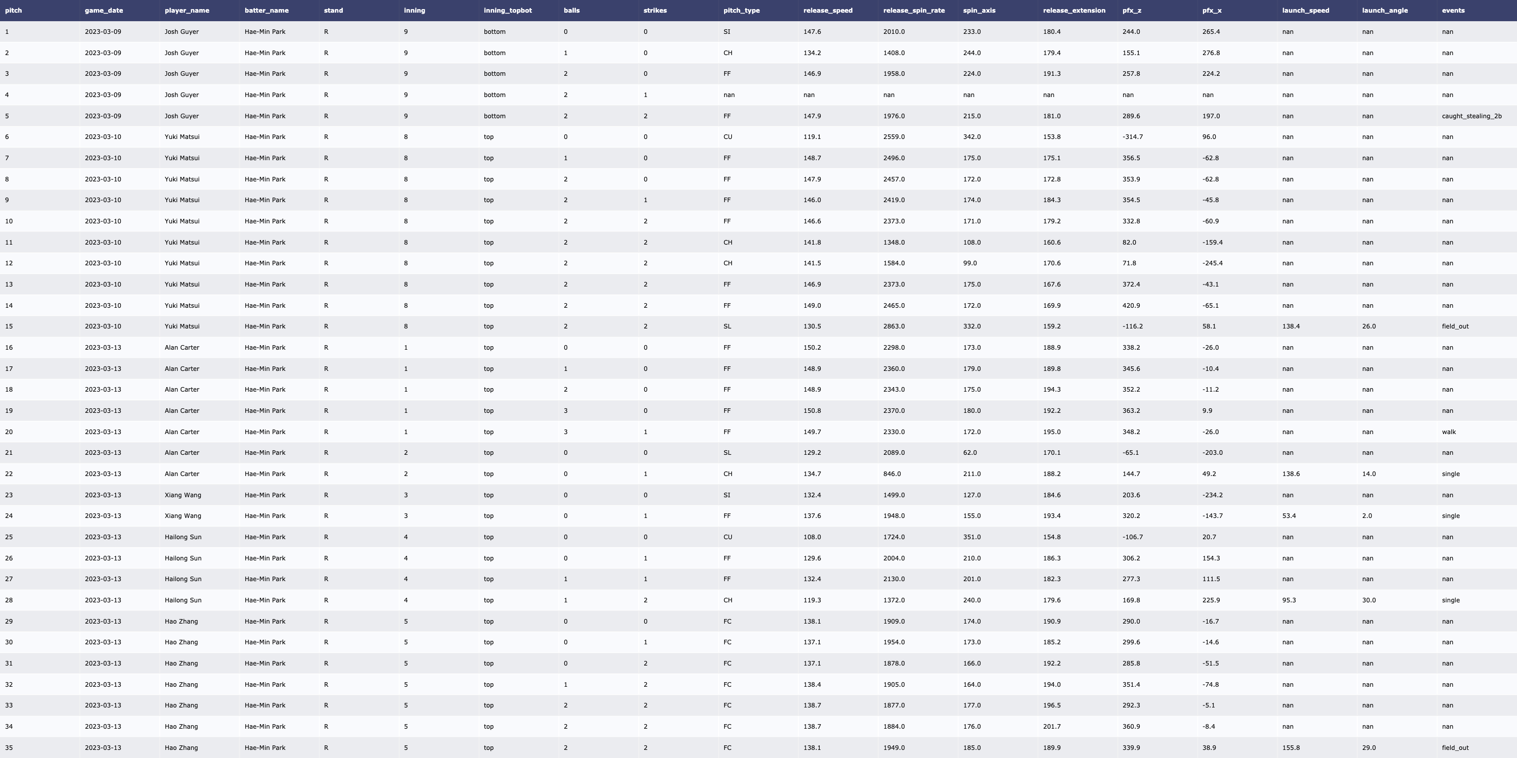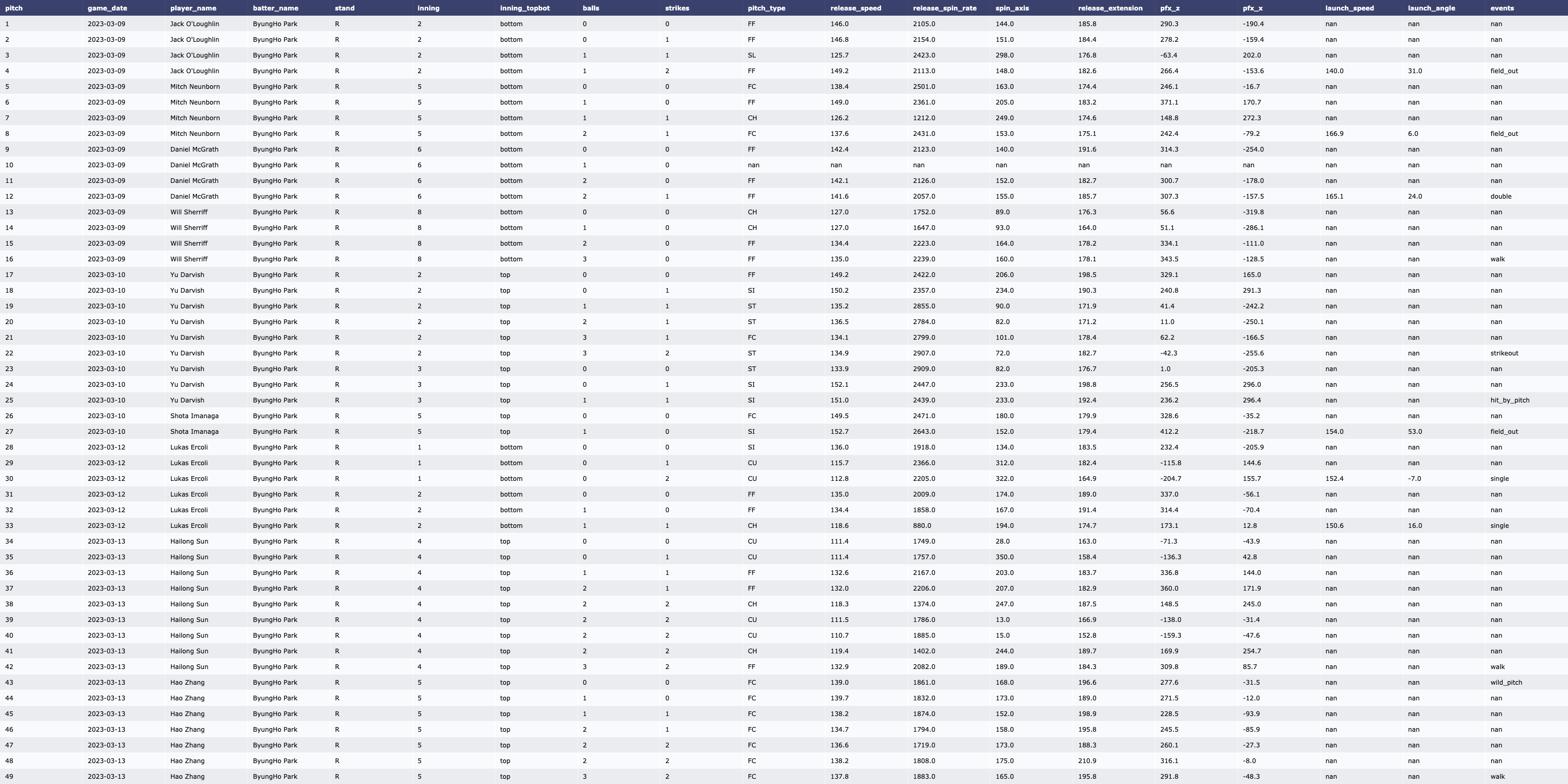 | [MLB/서울시리즈] Yu Darvish vs LA Dodgers (2023, Tracking Data) (0) | 2024.03.16 |