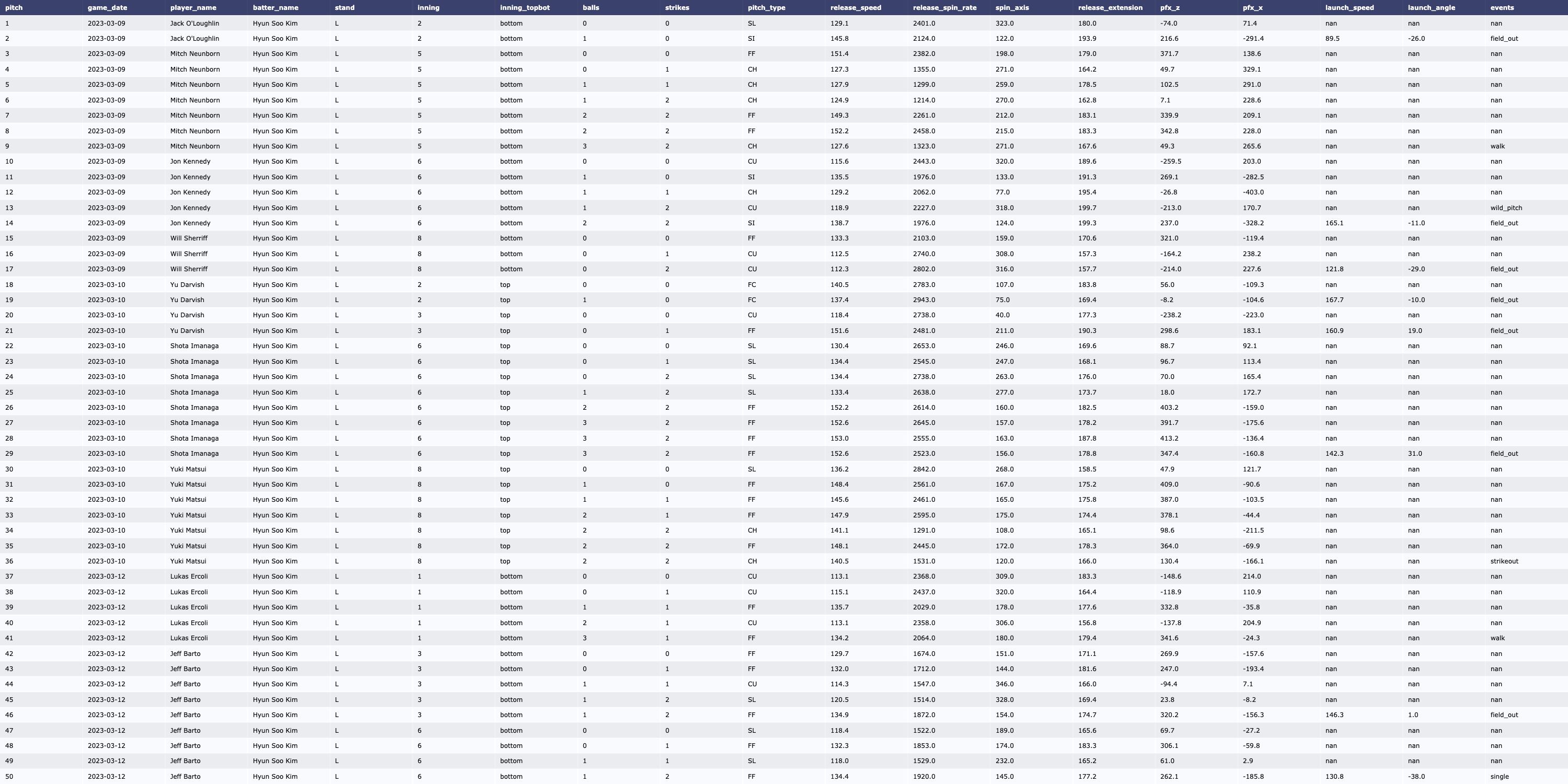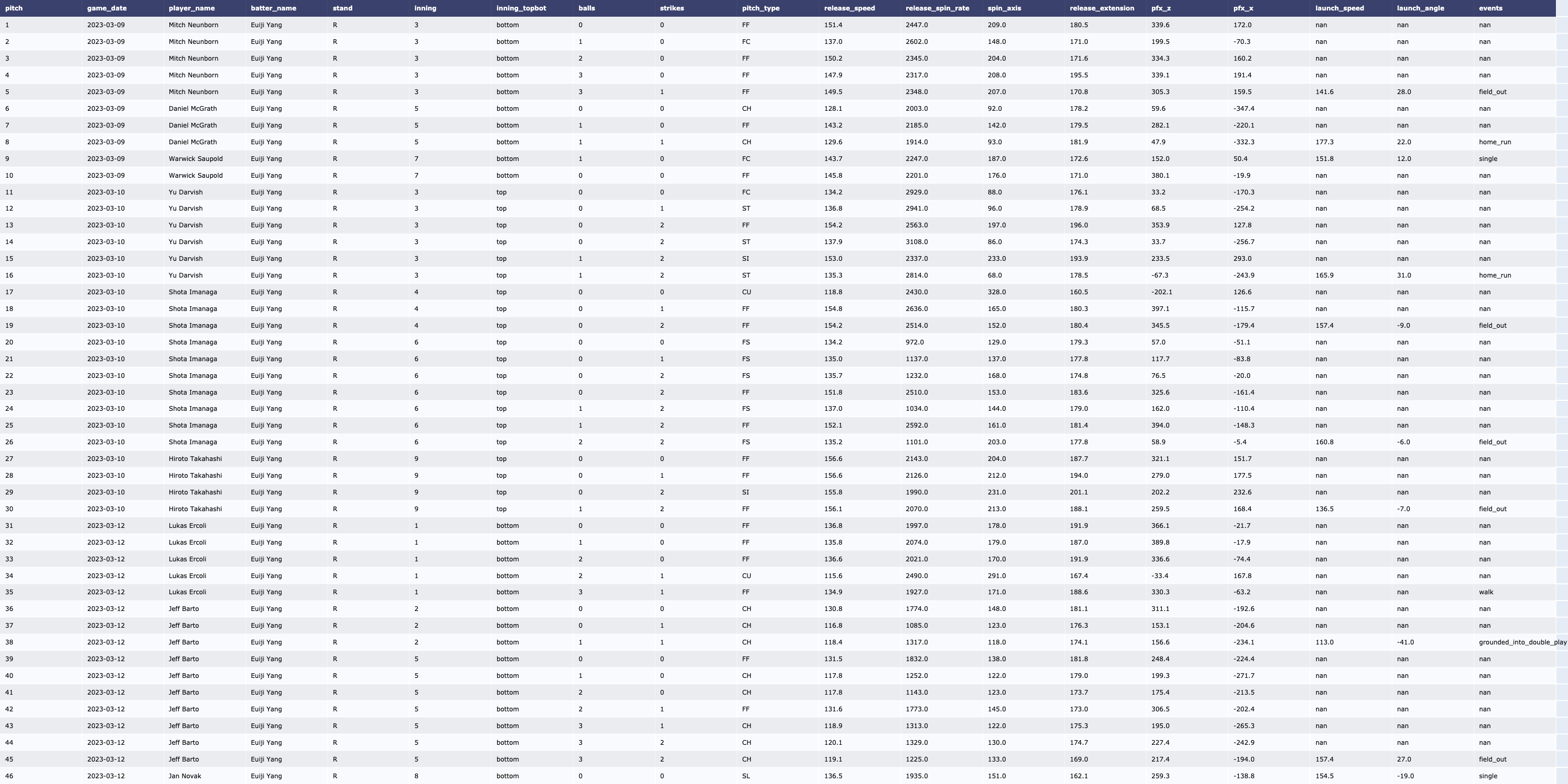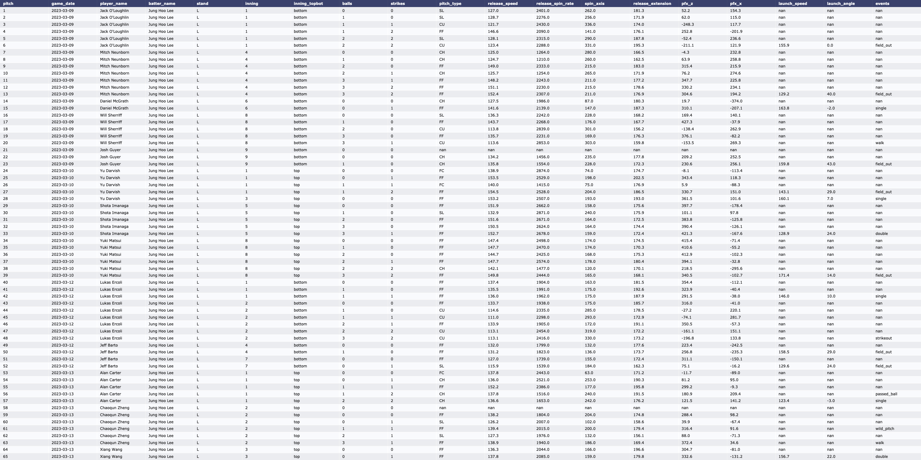 | [MLB/서울시리즈] Yu Darvish vs LA Dodgers (2023, Tracking Data) (0) | 2024.03.16 |