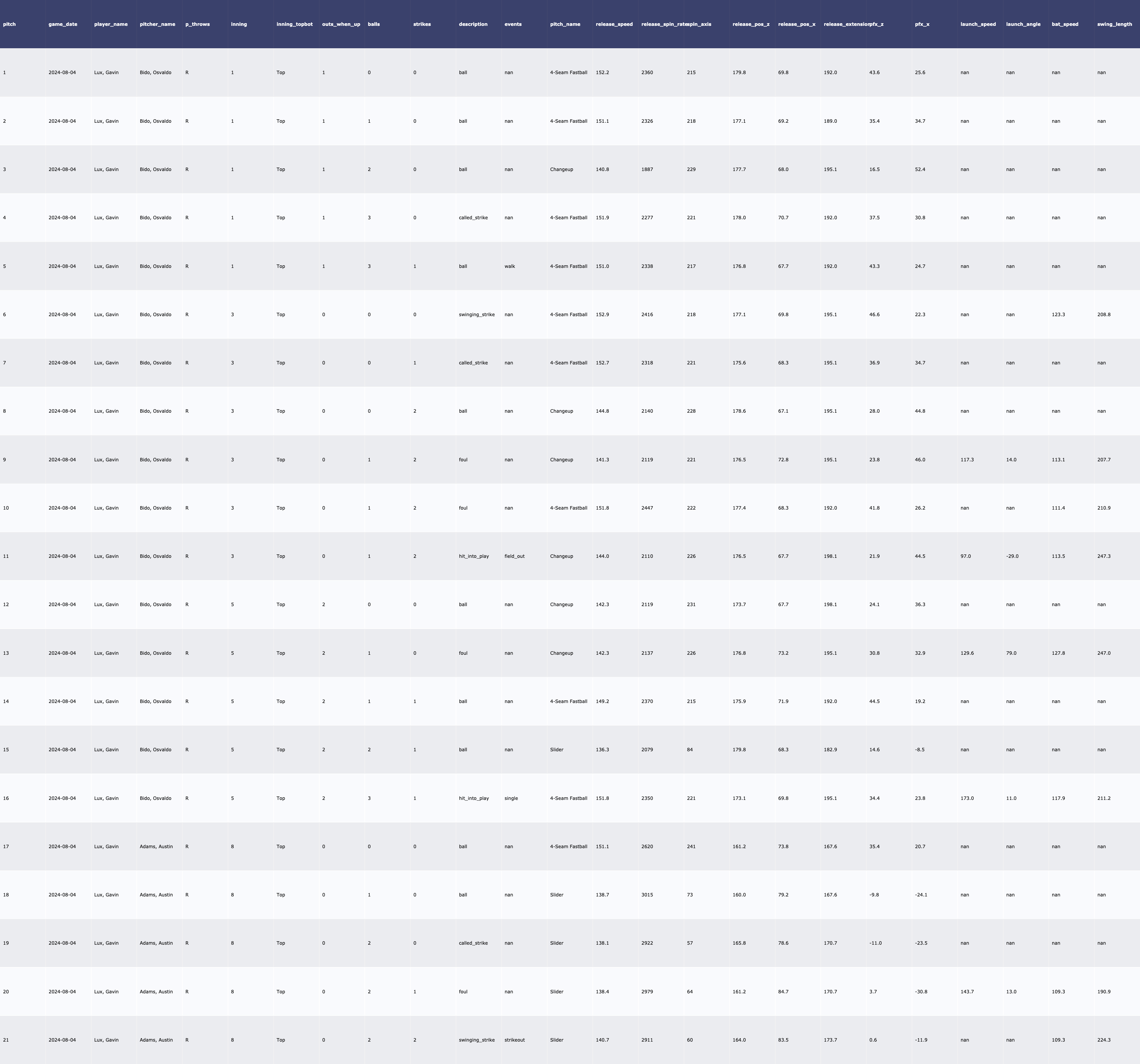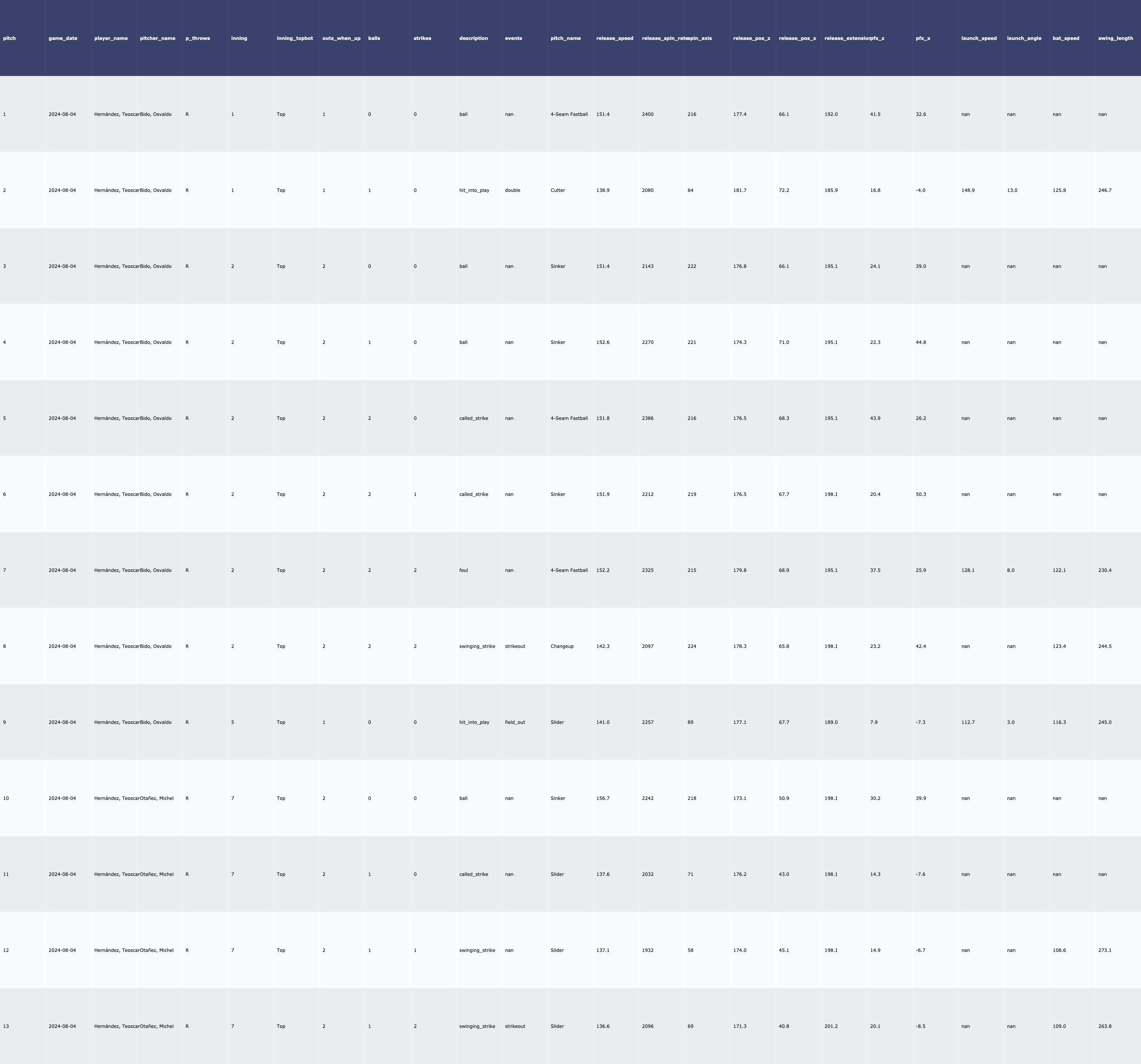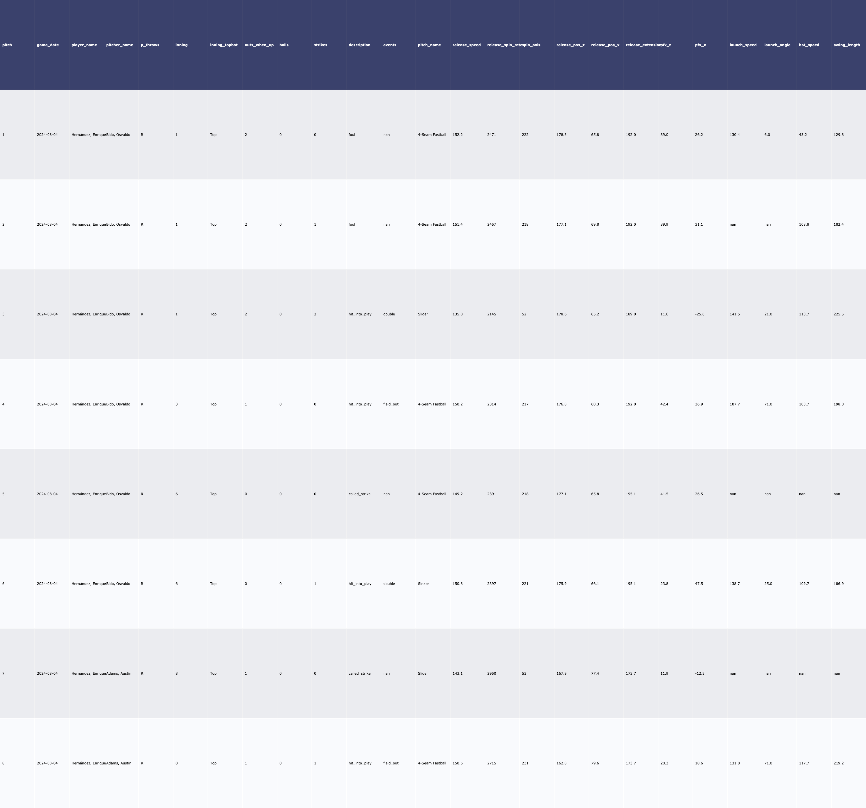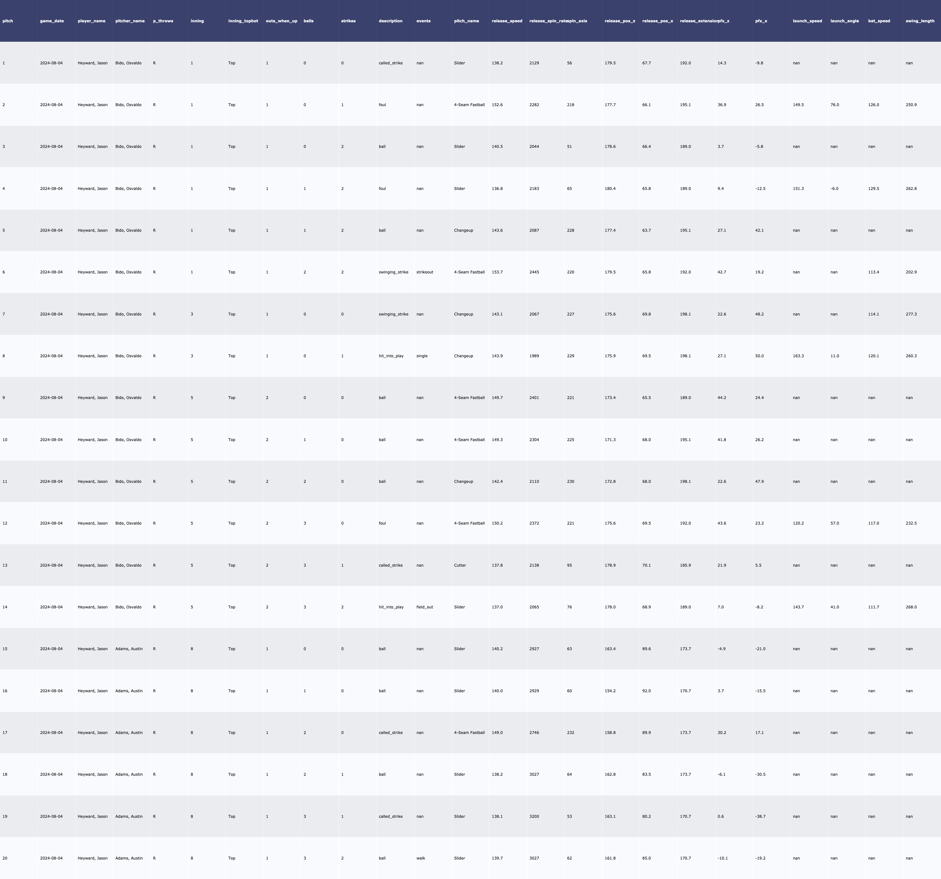 | 8/6 vs PHI 투수 데이터 (0) | 2024.08.07 |
