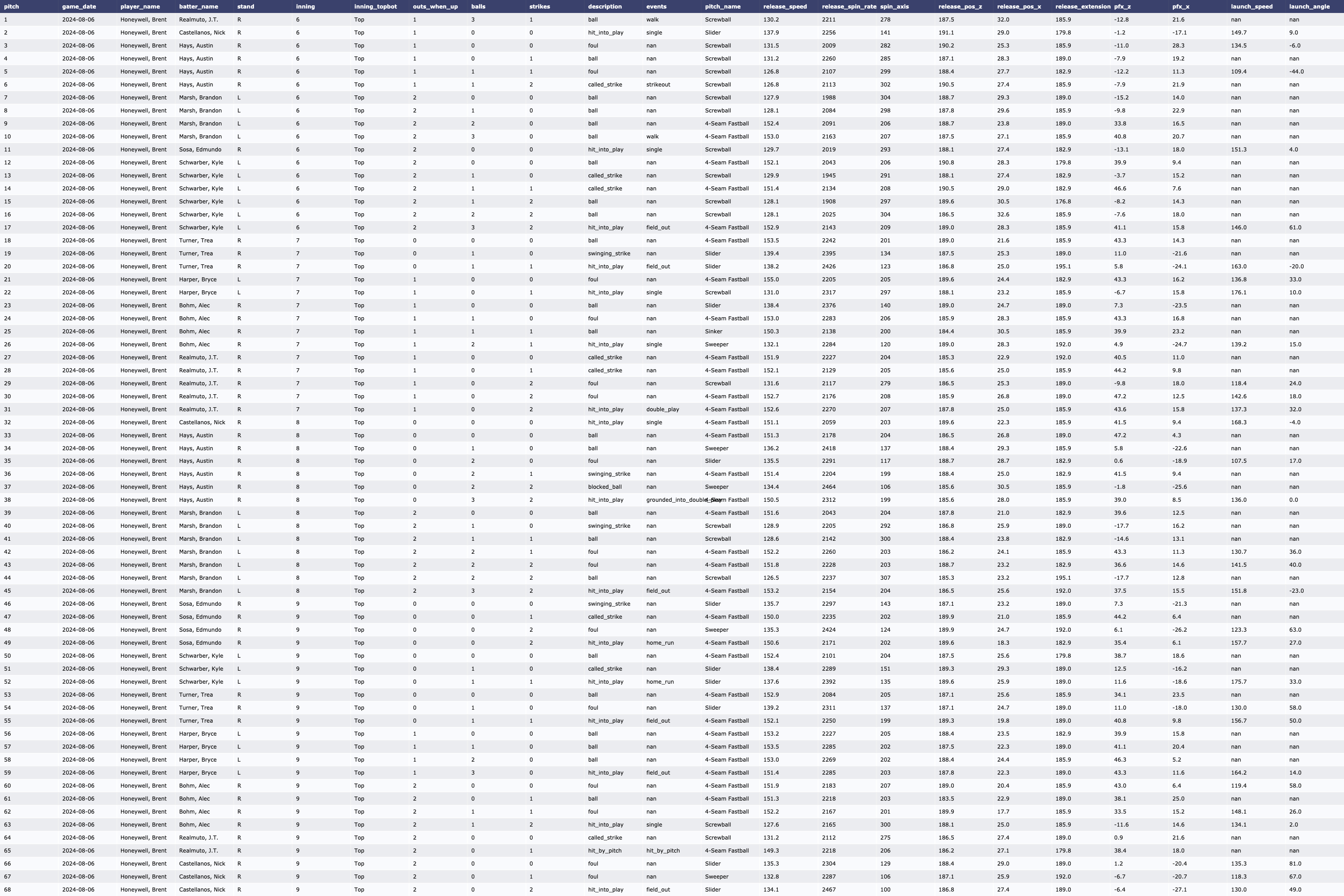 | 8/6 vs PHI 투수 데이터 (0) | 2024.08.07 |