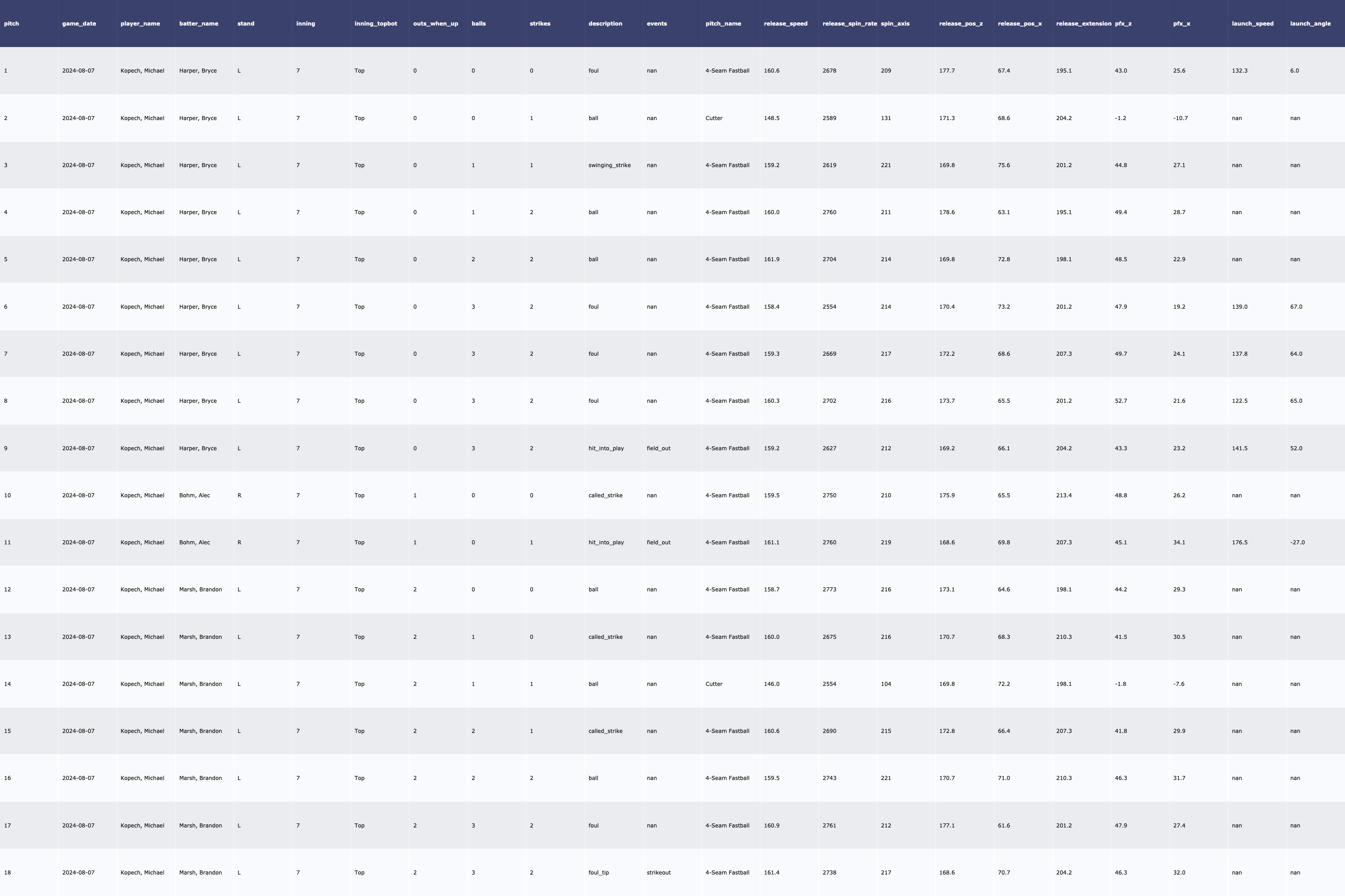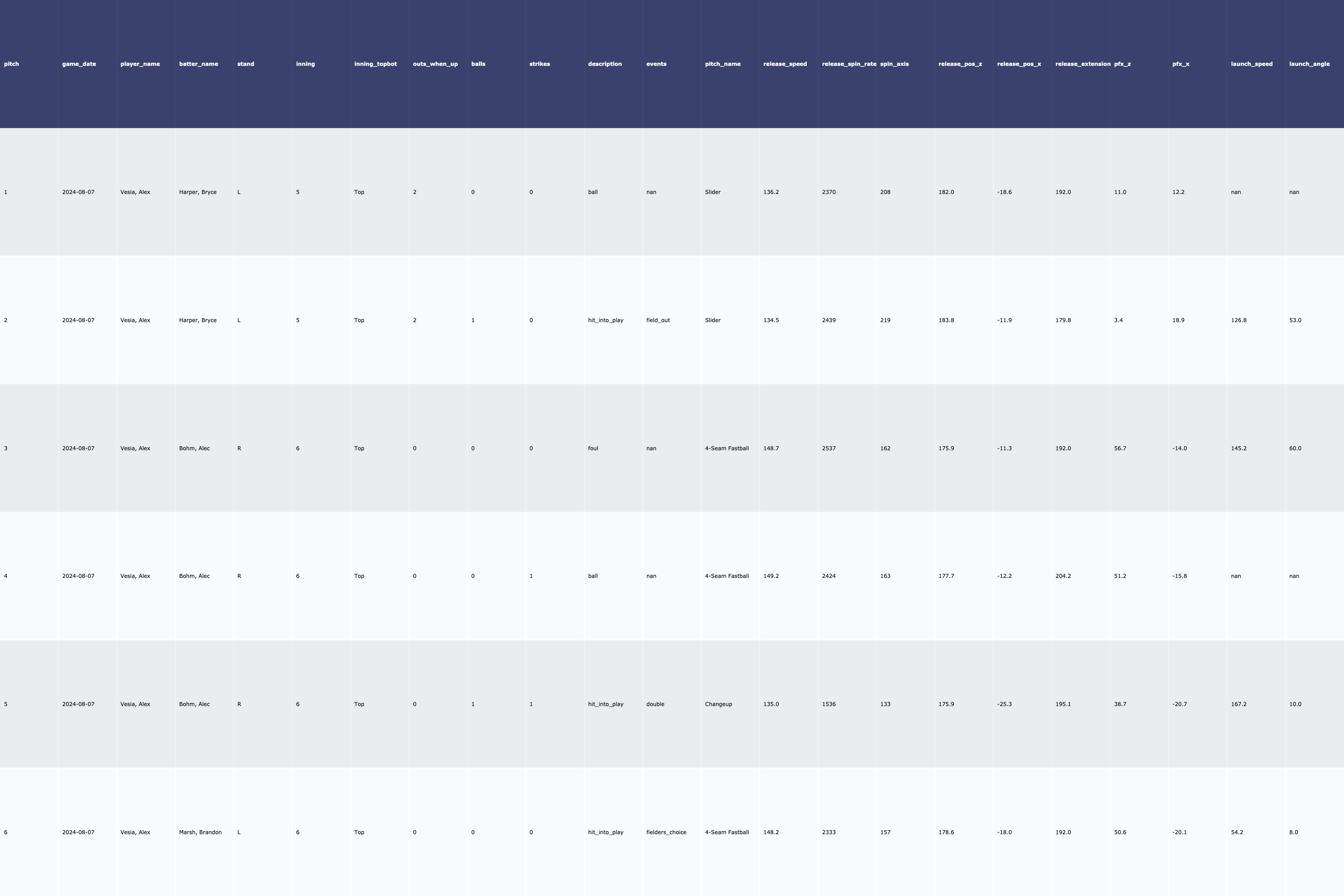 | 8/7 vs PHI 투수 데이터 (0) | 2024.08.07 |